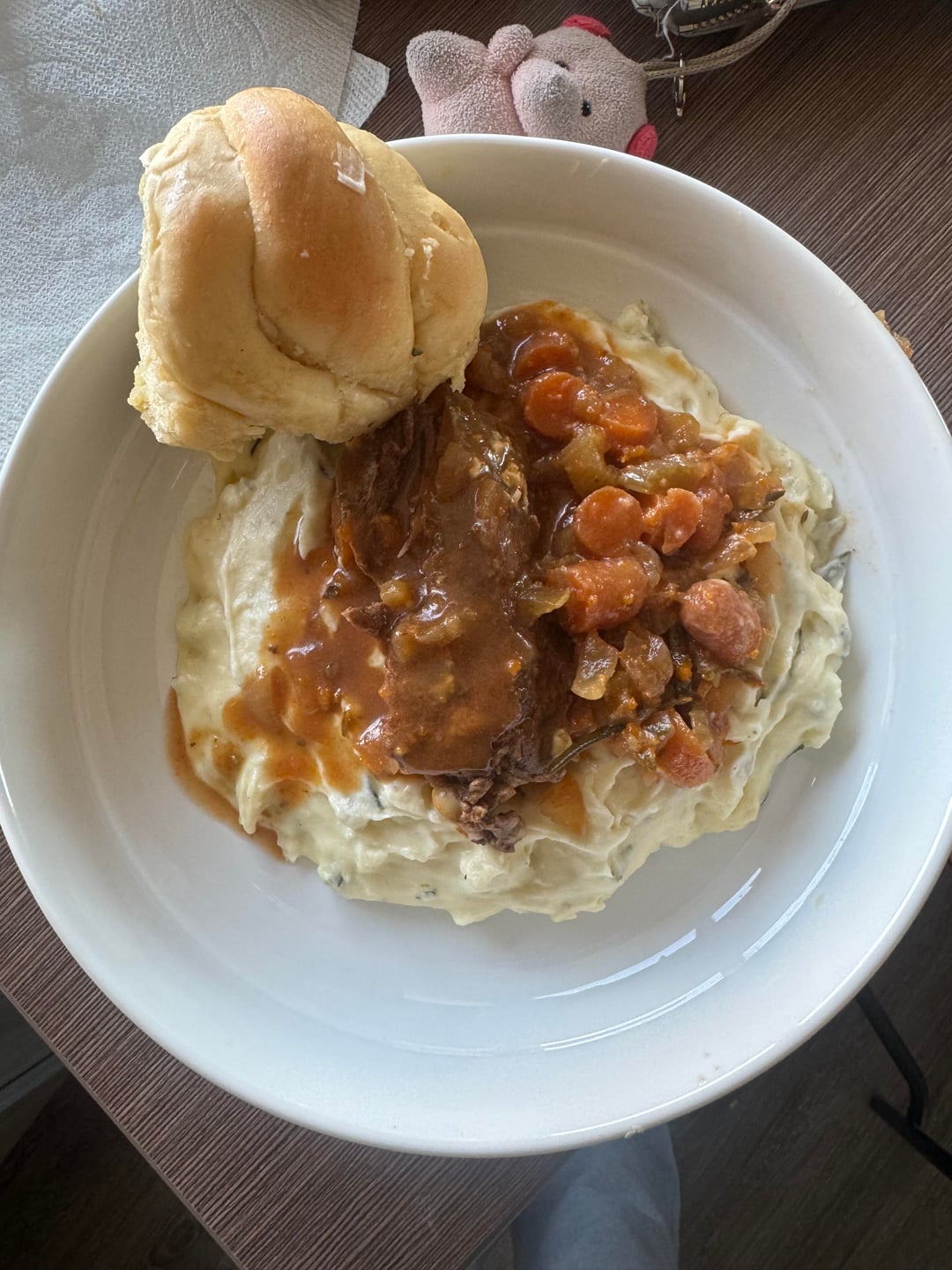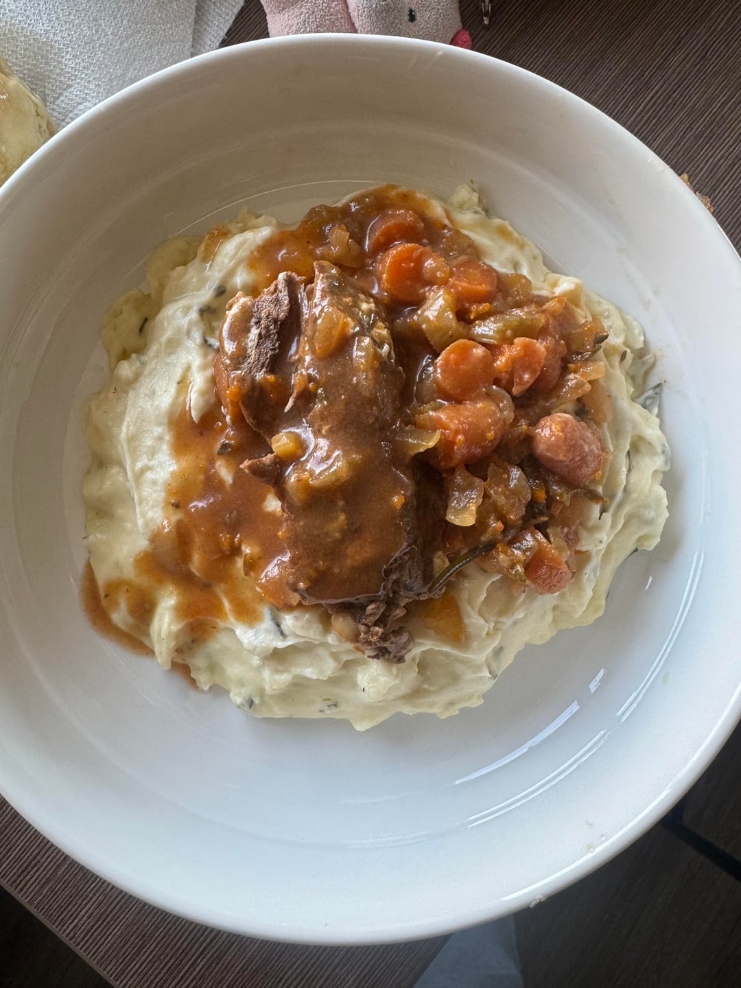 Meatloaf, green beans, salad, and mash. We love it when Frank is out of town. How do people not like meatloaf and mash?