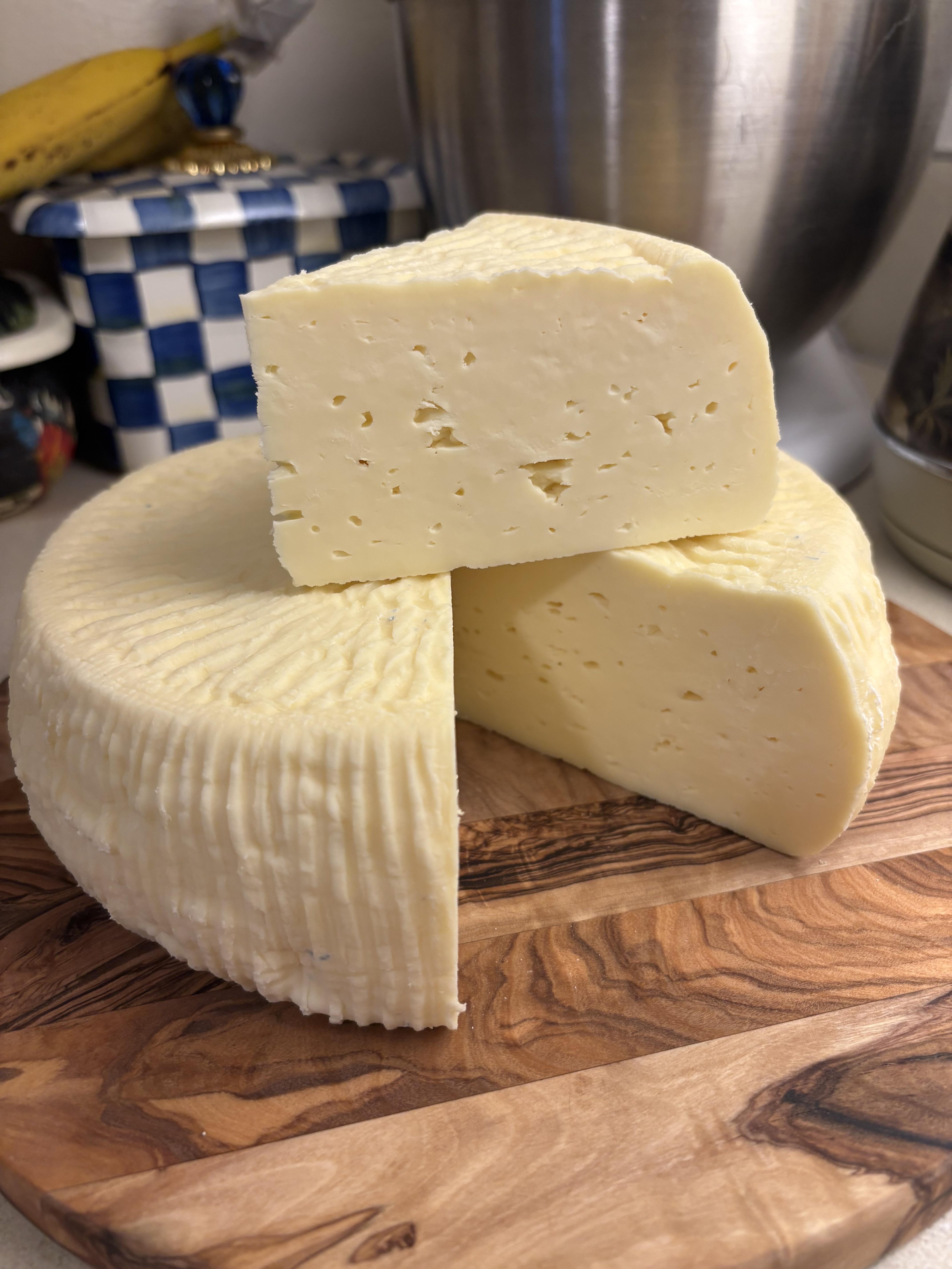 Lovely little homemade fresh unpressed basket cheese. The flavor is sort of like yogurt and salted sunflower seeds. Light, very creamy and really delicious.