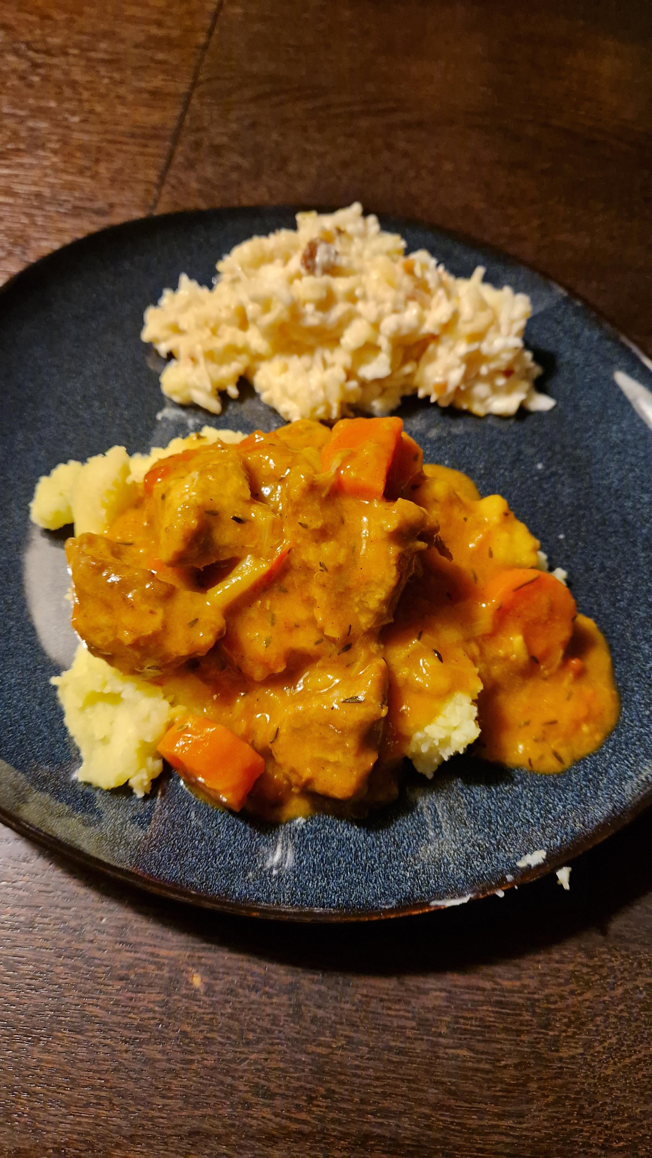 Veal with apricots stewed in white wine, celery salad with raisins by Far_One3229 Dinner Tonight Tonight's Dinner