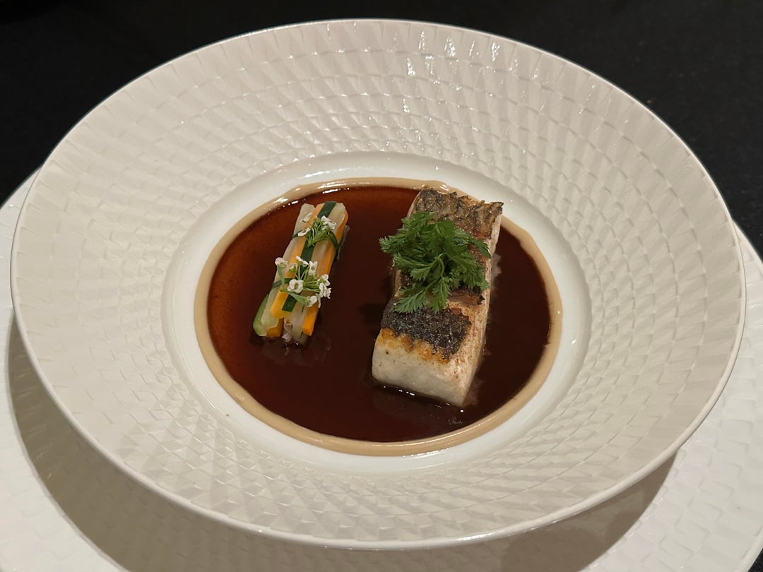 Le Bar: Pan-fried sea bass with mild spices and red wine reduction
