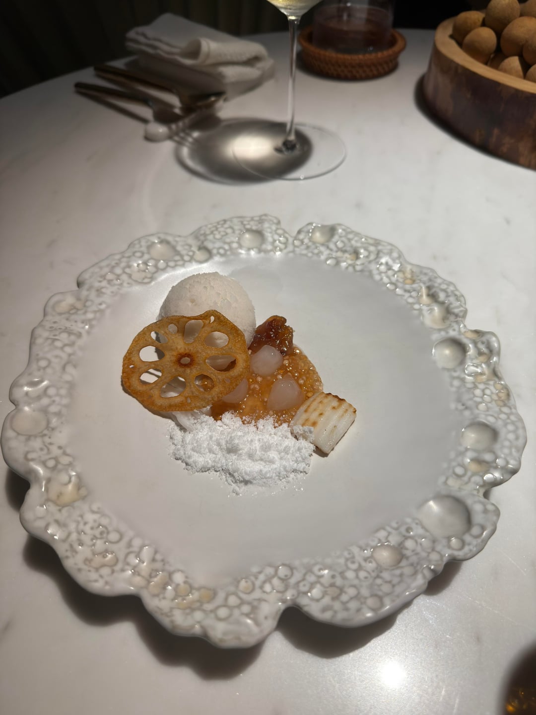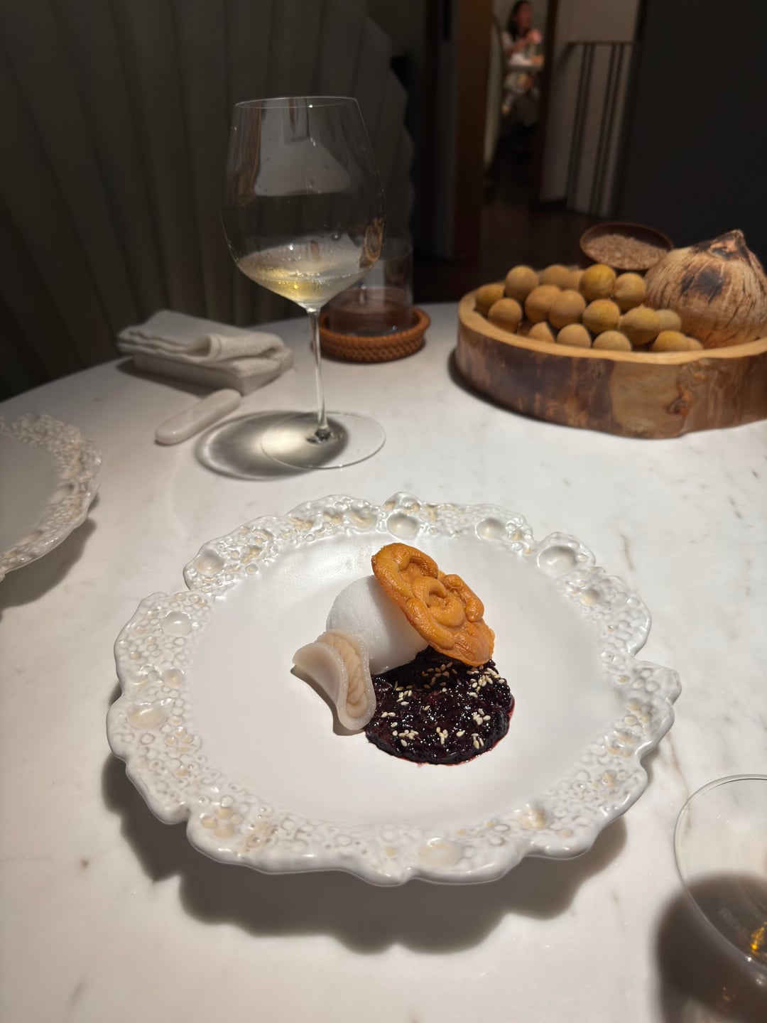 Interestingly, the only real interaction with the service happened at dessert, when I ordered a glass of Château d’Yquem. We exchanged a few pleasant sentences — one of the very few moments that felt personal throughout the evening.