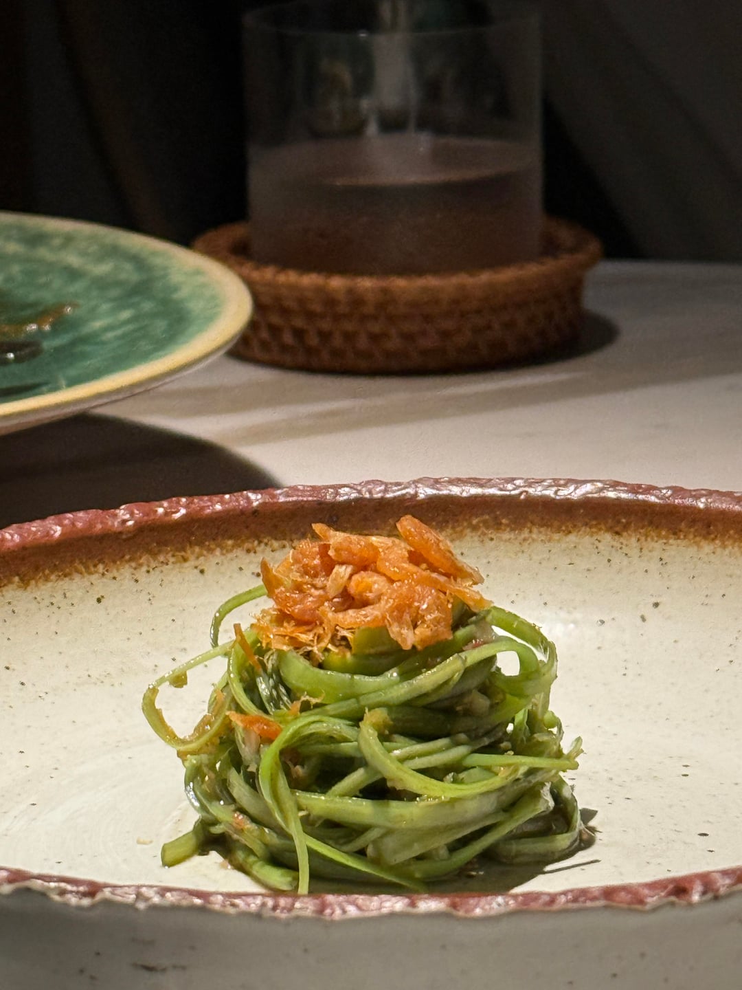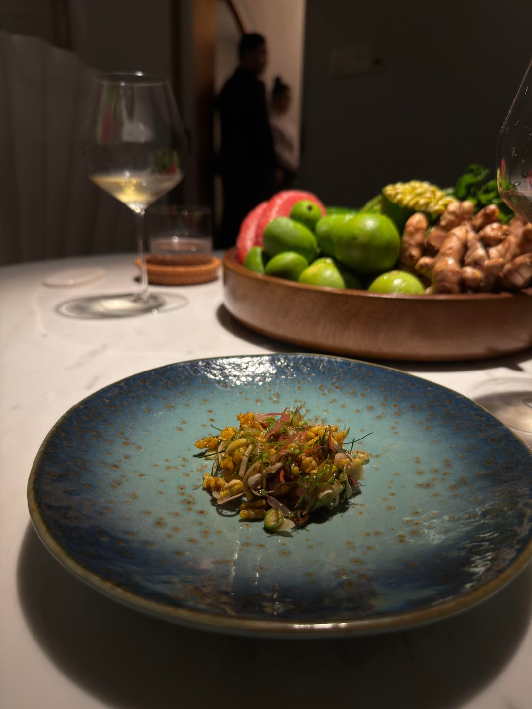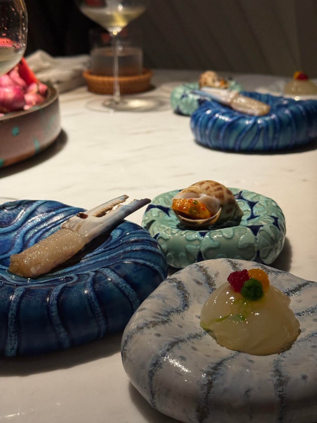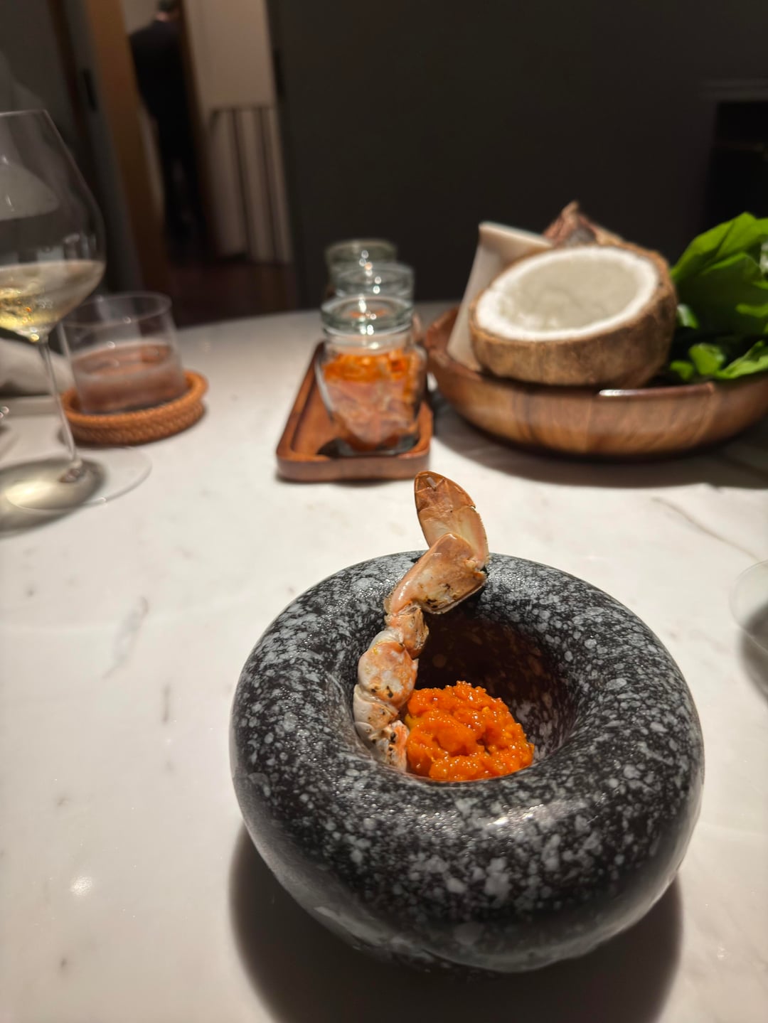Service overall was technically polished but emotionally flat. The pacing was synchronized and calm, yet the experience felt transactional. We were seated with menus already on the table; the wine list was handed over without introduction, and engagement from the team remained minimal. An “ingredients basket” was placed down without explanation, described only later, and partially cleared while we were still eating. No introductions by name, no small talk, no sense of warmth.