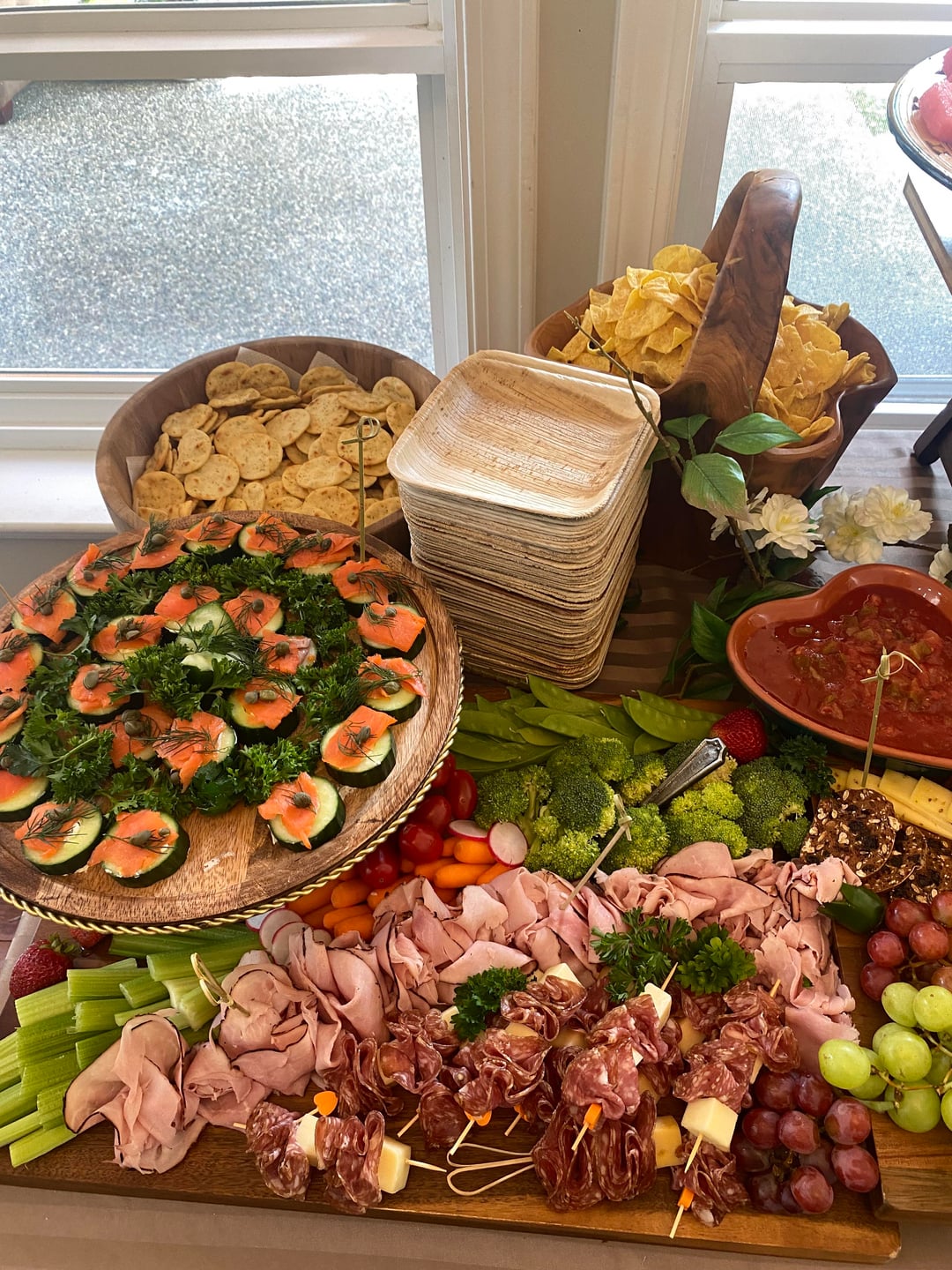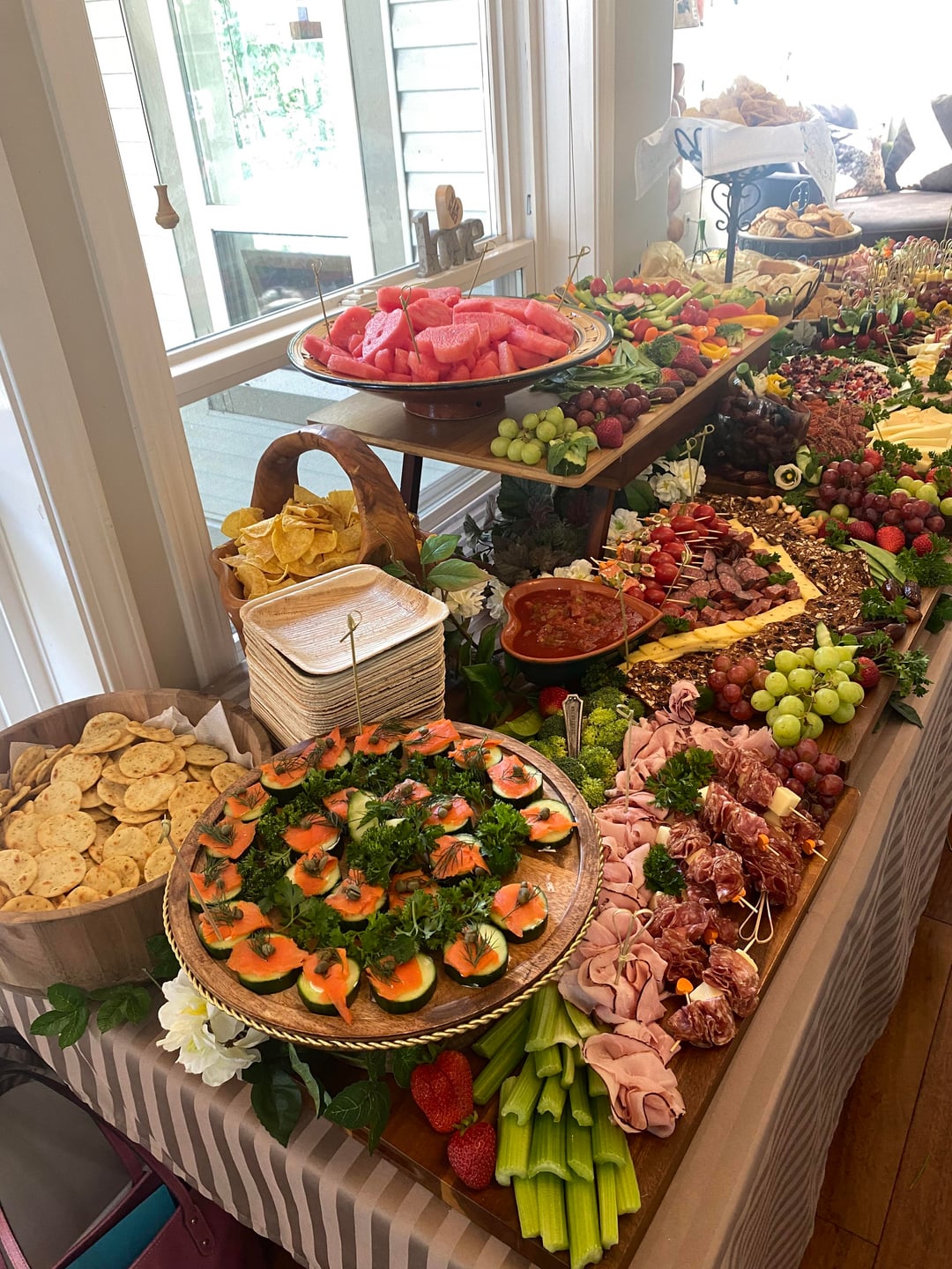 3. Abundance of fresh fruit and vegetables, lovely baked goods, tons of quality protein in many forms, and sustainable leaf plates… *definitely* a Vancouver table!