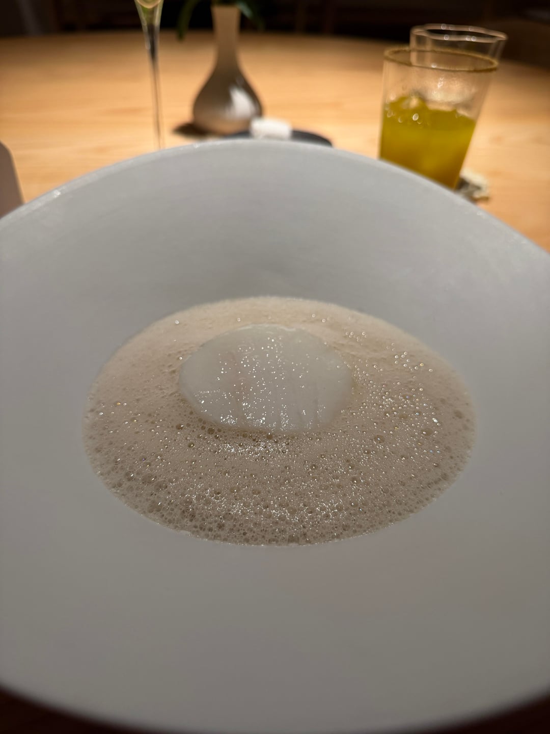 8. Palate cleanser, their own recreation of Nasi Lemak, a Malaysian rice dish. My favorite items have always tended to be complete transformations of traditional dishes like this one. And I was introduced to many of that kind this evening, which is a wonderful thing. In the case of this one, it might look simple on the surface, but it contained quite a complexity at its core. They made rice and coconut sorbet and hid pieces tasting like cucumber, dried anchovies, and chilies, all of which shared the same white color. I was advised to mix them all together to fully enjoy it, and I did just that.