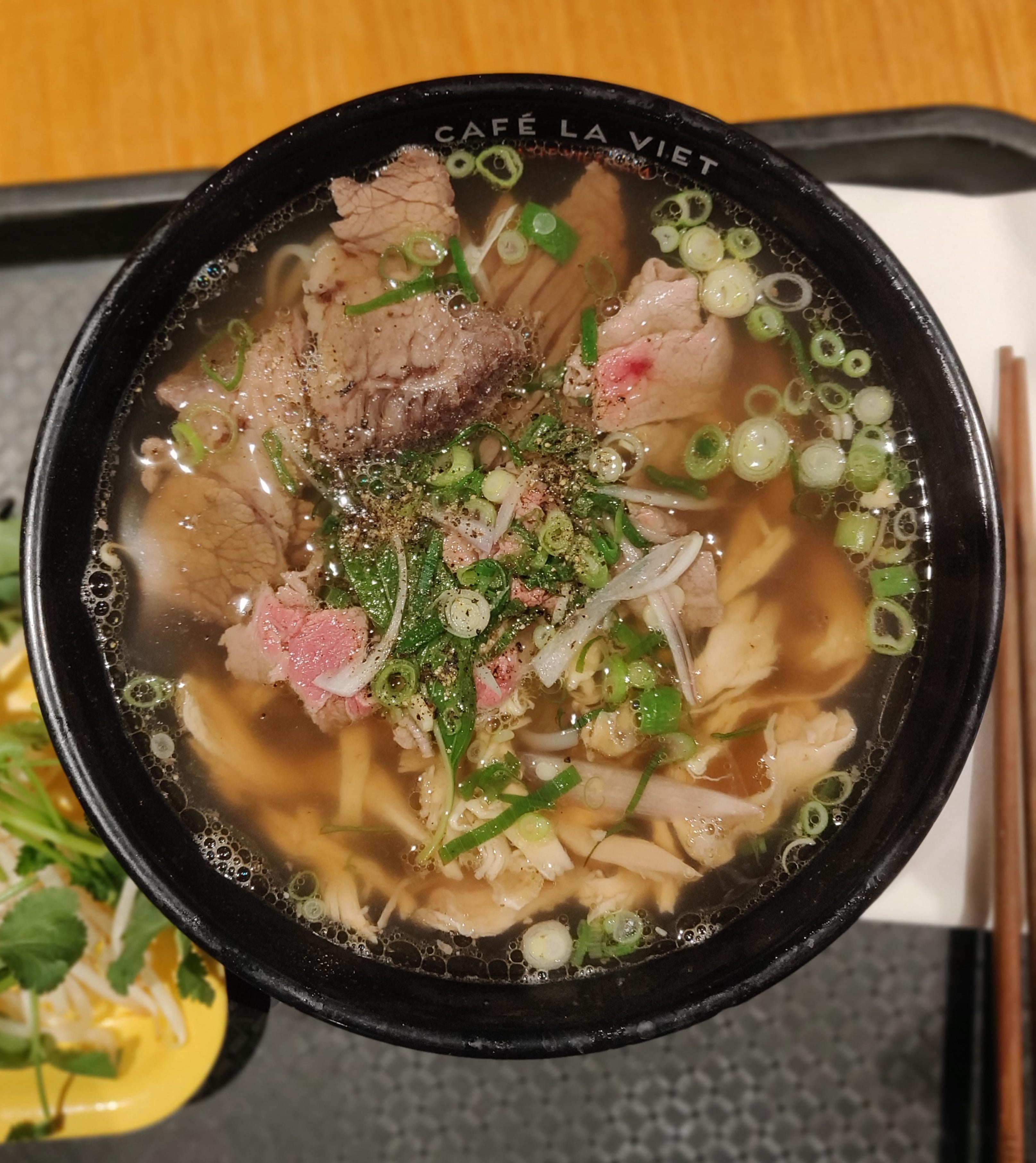 Beef and Chicken combo original Pho from Cafe La Viet at Bangbang Oriental Foodhall in Colindale London.