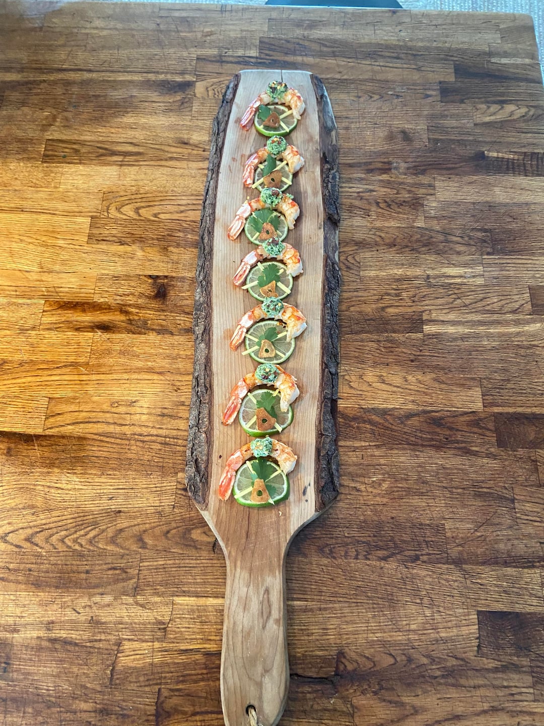 Lime, ginger, garlic and chili flake prawns