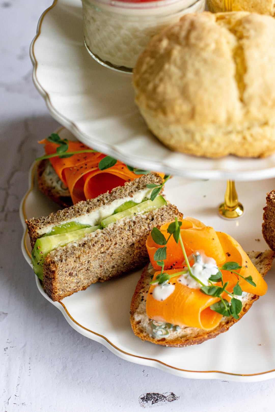So I put together a very chic, fully vegan watch party selection inspired by English tea time, think elegant bakes, delicate bites, and cozy little savory things to nibble on while we dramatically react to every look and longing stare 🫠