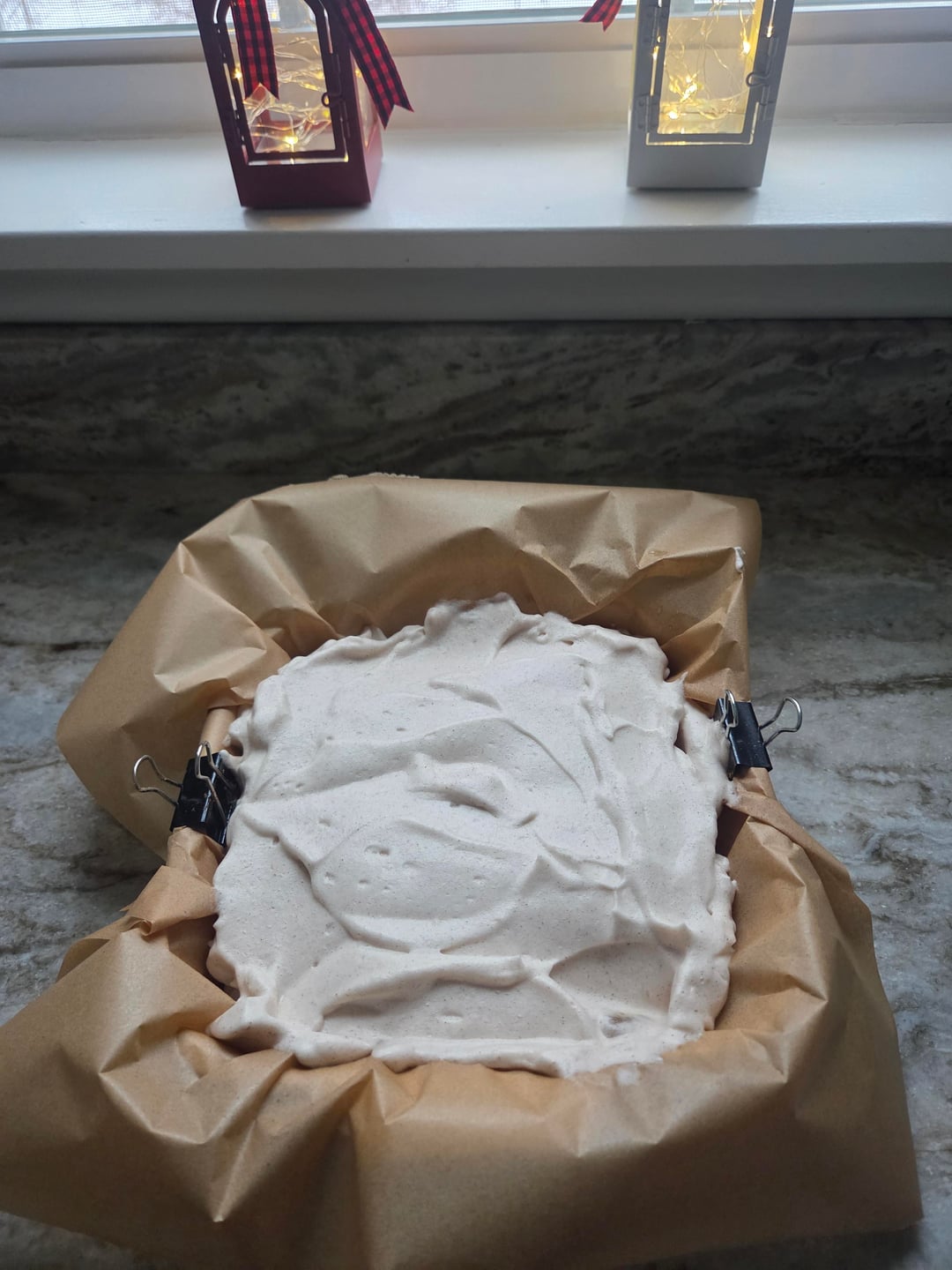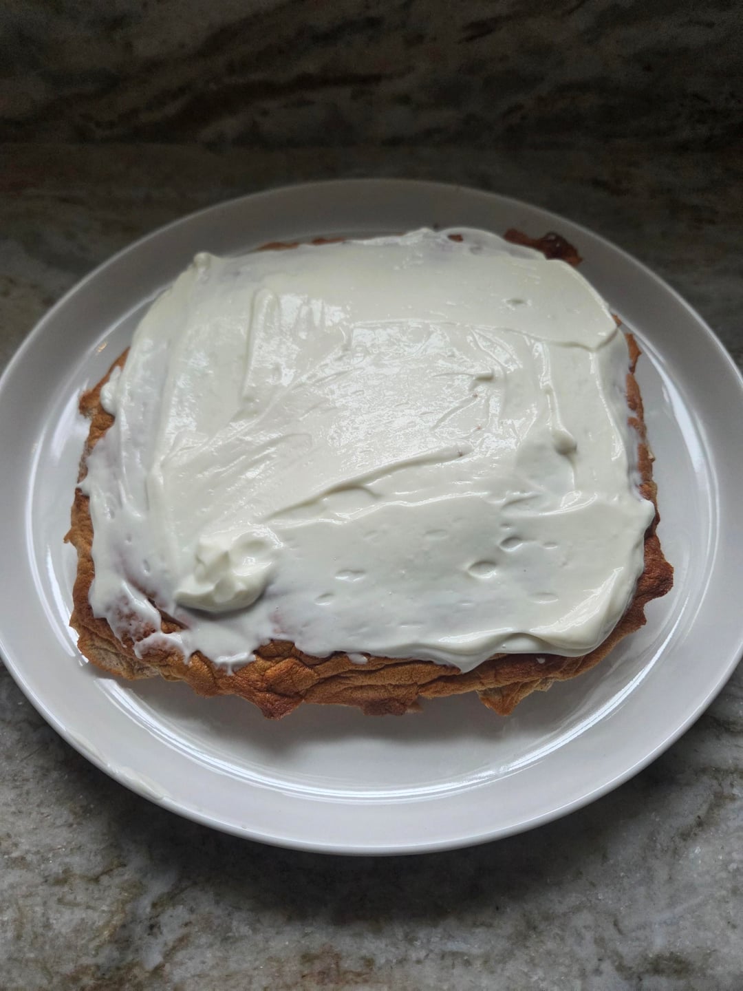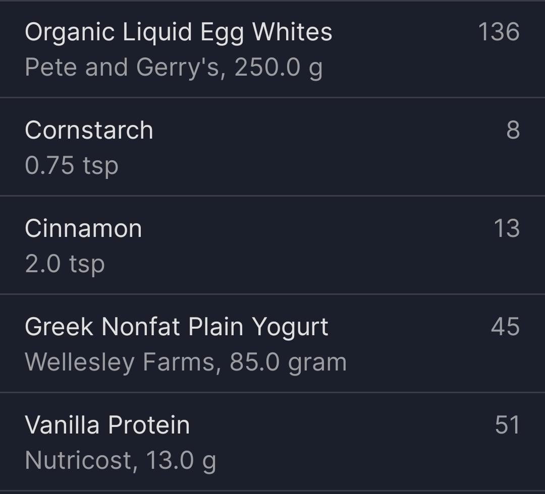 I don't even know what to call this, it's based on something I saw on instagram, she's HUGE. Whip the sh*t out of egg whites until they're fluffy, then fold in cornstarch, sweetener, cinnamon and vanilla. Bake at 400 for ~12 minutes. I mixed vanilla protein powder with greek yogurt but you could also top with berries, sugar free syrup, melted chocolate etc.