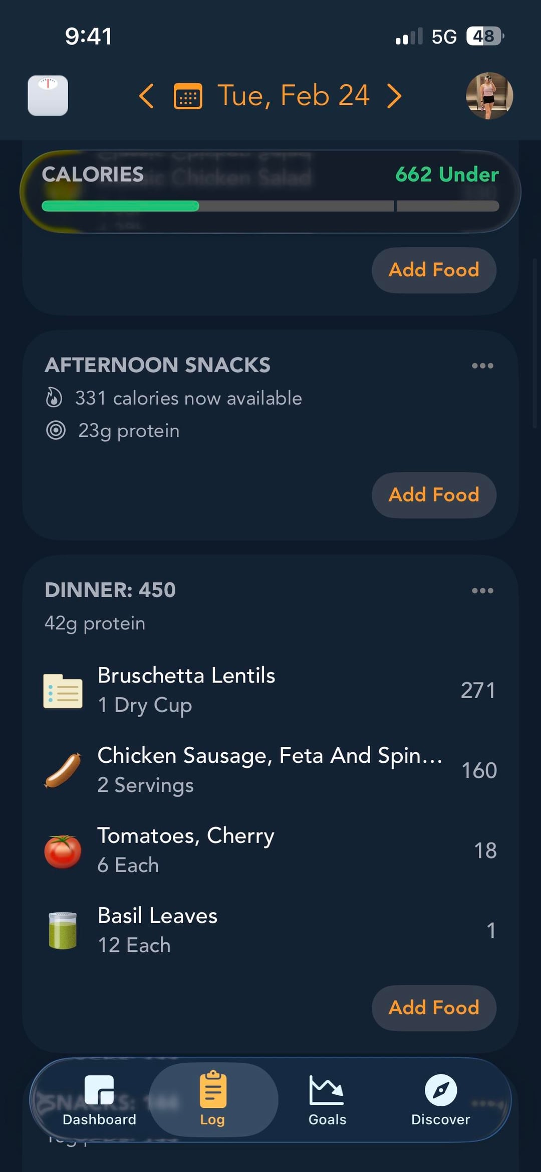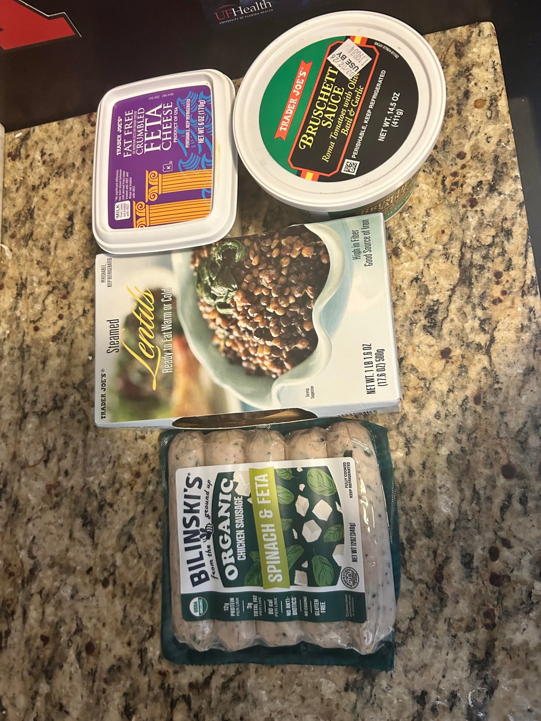 Dinner – Bruschetta Lentils from IG with chicken sausage, tomatoes, & basil