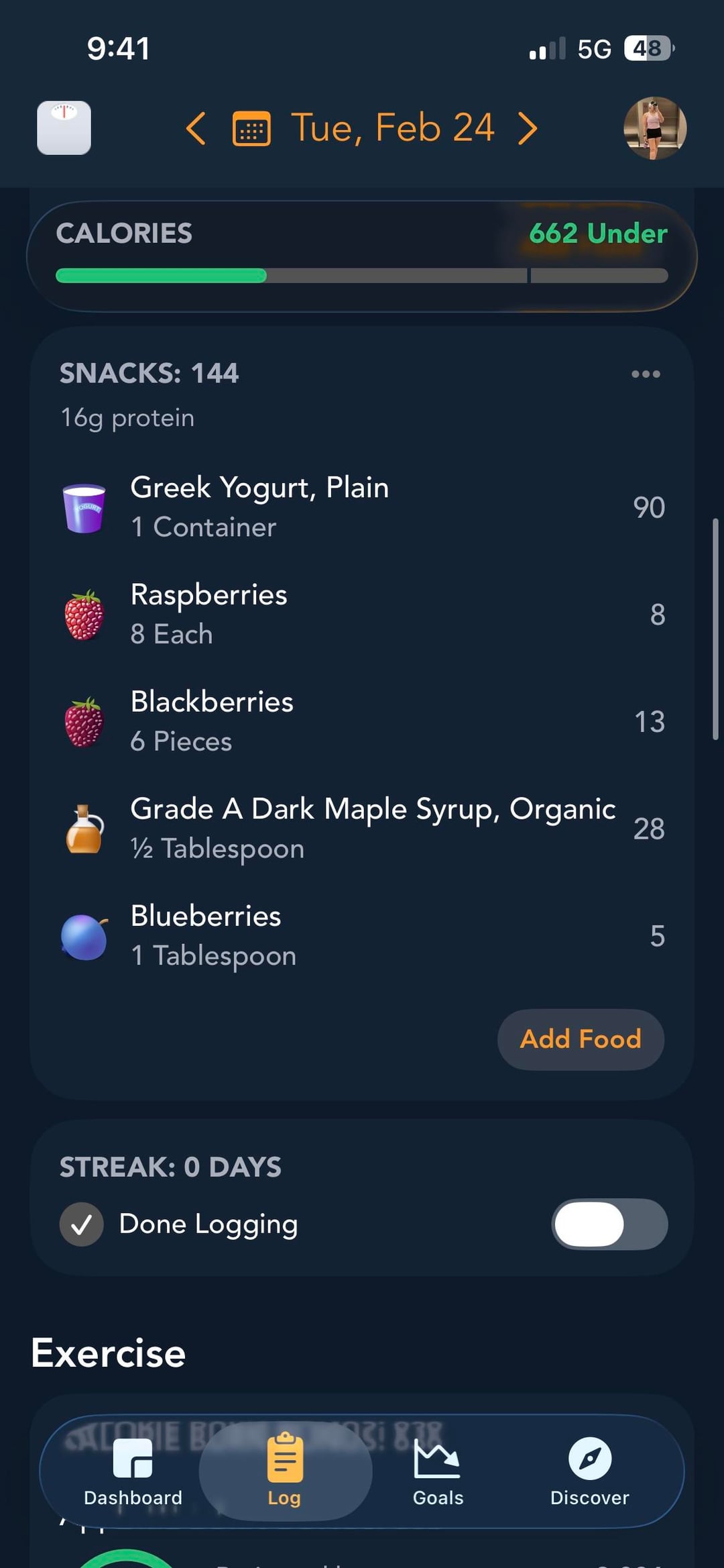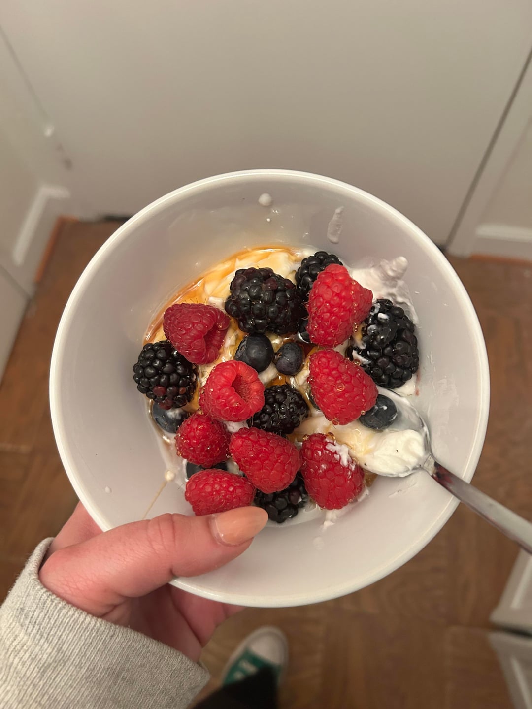 Post Gym Snack- yogurt bowl with berries & 1/2tbsp maple syrup