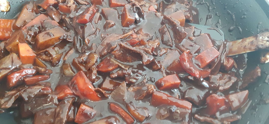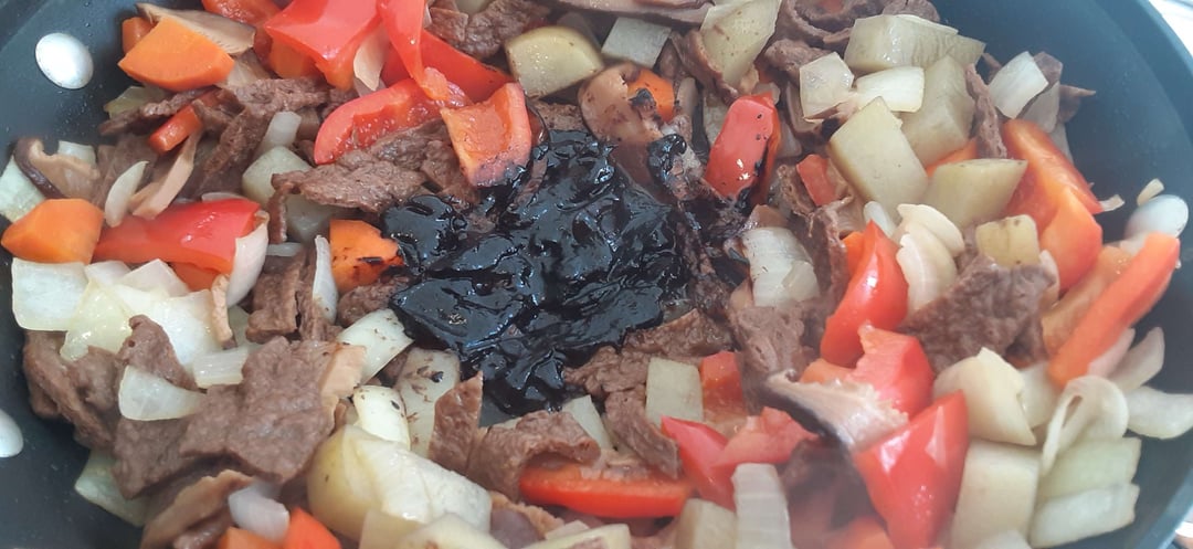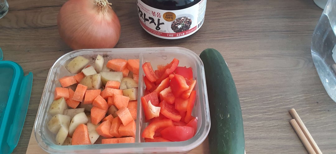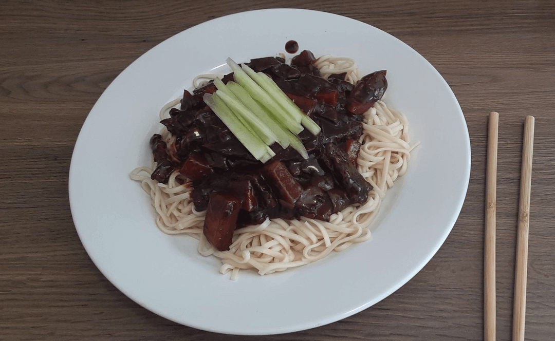 This is based on the Chinese dish, Zhajiangmian, and was brought to Korea by Chinese immigrants. This was one of my favorite dishes as a kid and was always excited when my mother cooked this! While traditionally made with meat, I subbed with vegan beef slices.