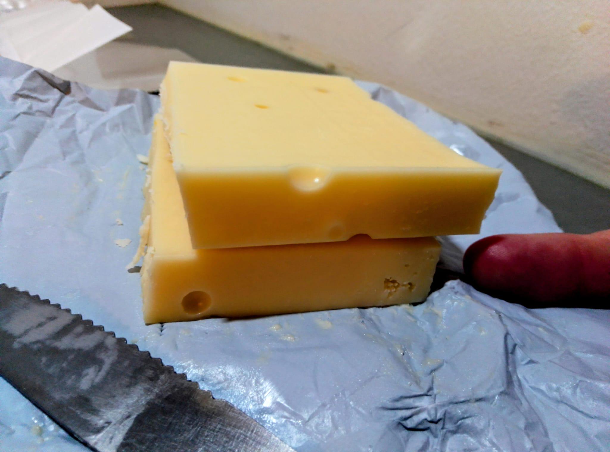 It is kind of cheaper anyway to buy a whole block of Emmental cheese in France and cut it in half, rather that stack up many slices of cheese. So, I made two small sandwiches with 100 grams of cheese each. by PuffyHamster Cheese