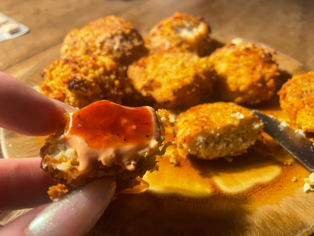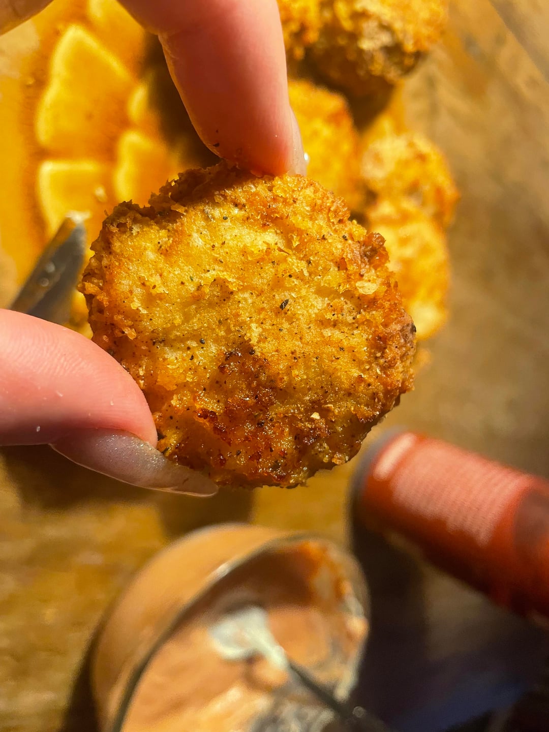 •Then added spices I like to the ground meat, shape them into nuggets and dust in whatever flour you like.