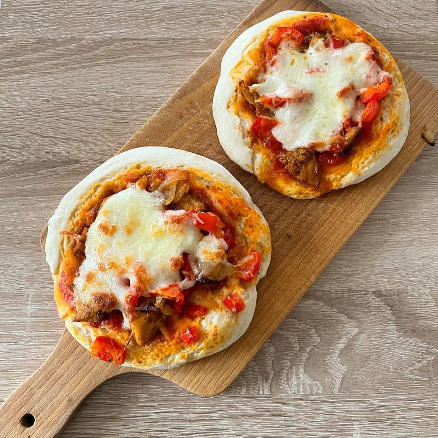 [homemade] Mini pizzas with melted mozzarella and roasted peppers