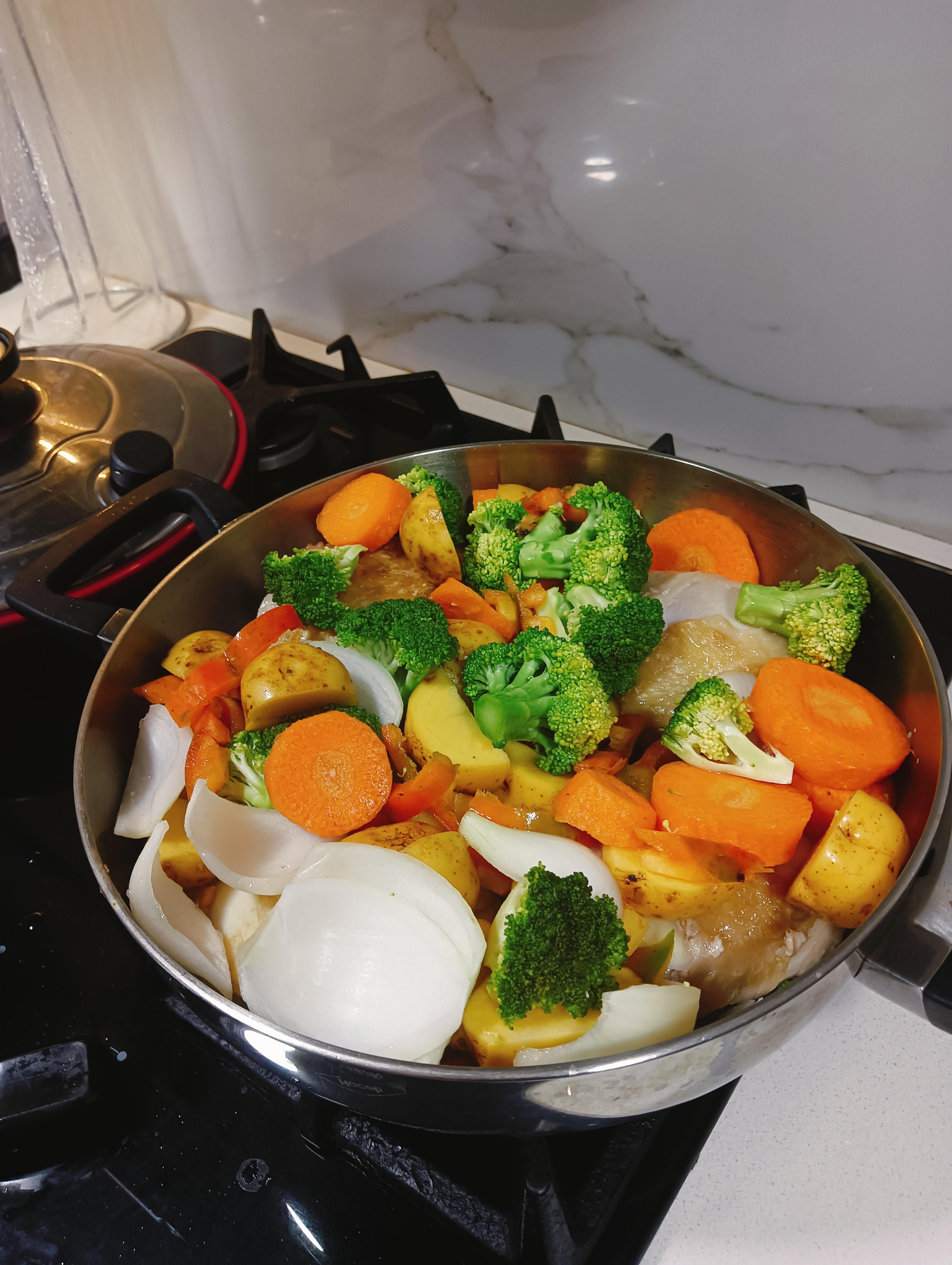 Is this before cooking? It looks like raw, cut up veggies and potatoes to me… especially those onions.