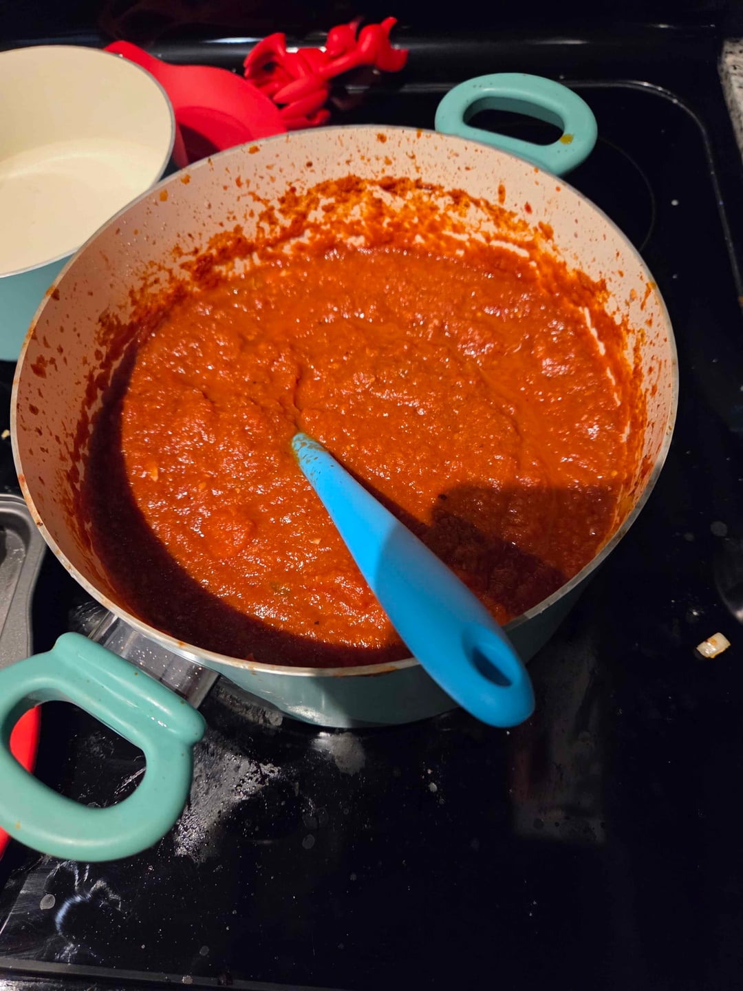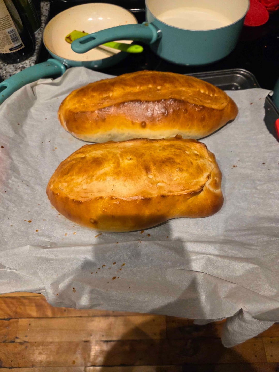 Made my first red sauce from scratch. Simmered for 5 hours and thickened in a sperate pan with the pasta water. The bread is homemade Japanese Milk Bread, and I made compound butter with oregano, roasted garlic, and lemon zest.