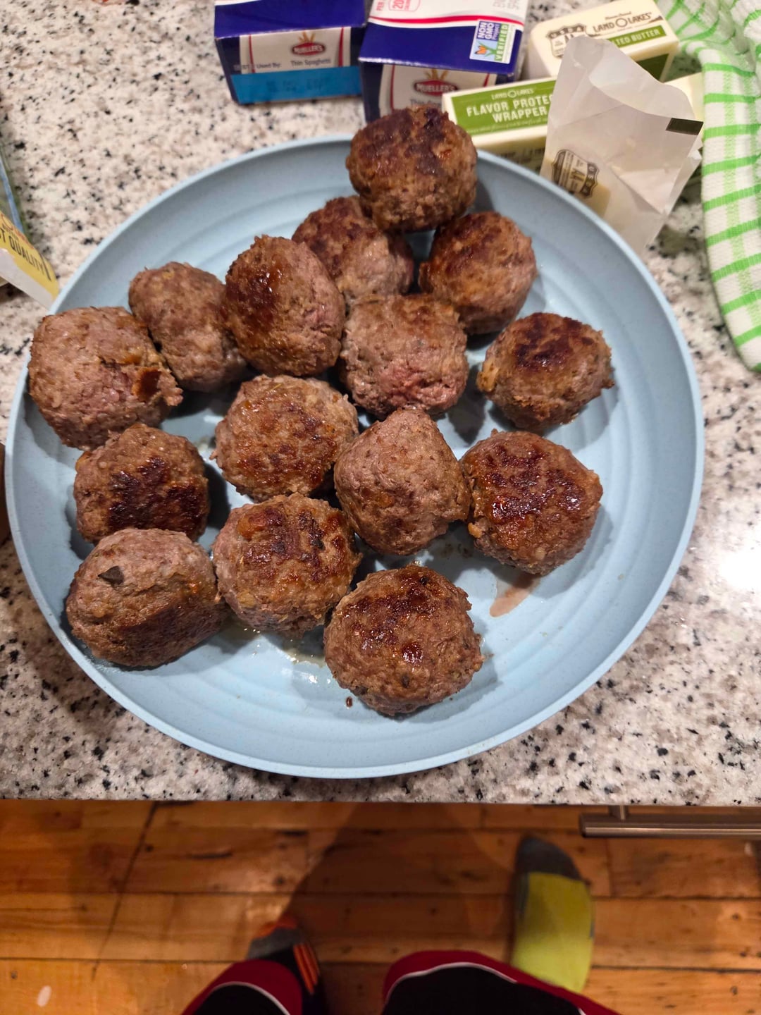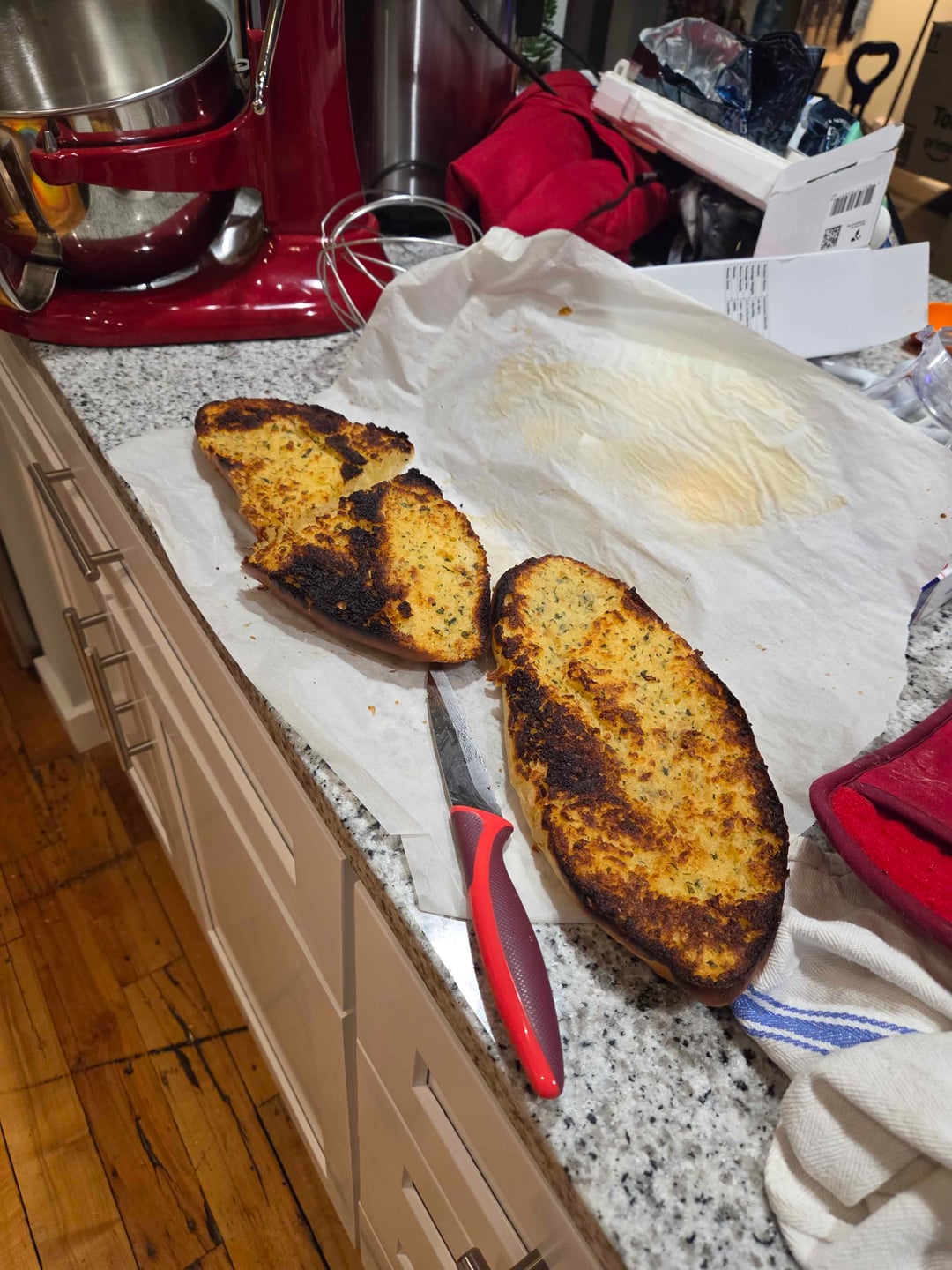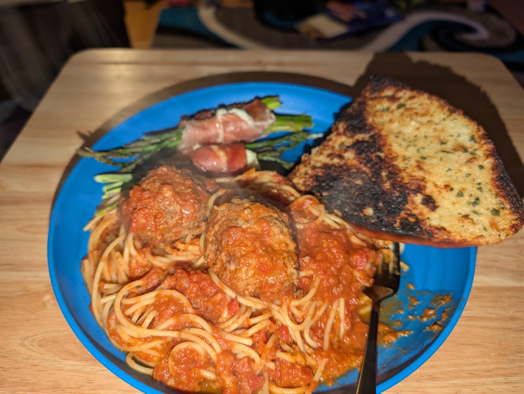 I cooked spaghetti, meatballs, and garlic bread [homemade]