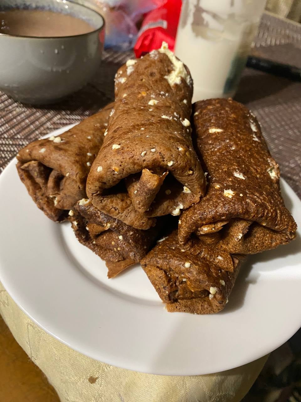 5. Heat a pan very well and cook the pancakes on a dry pan (no oil).