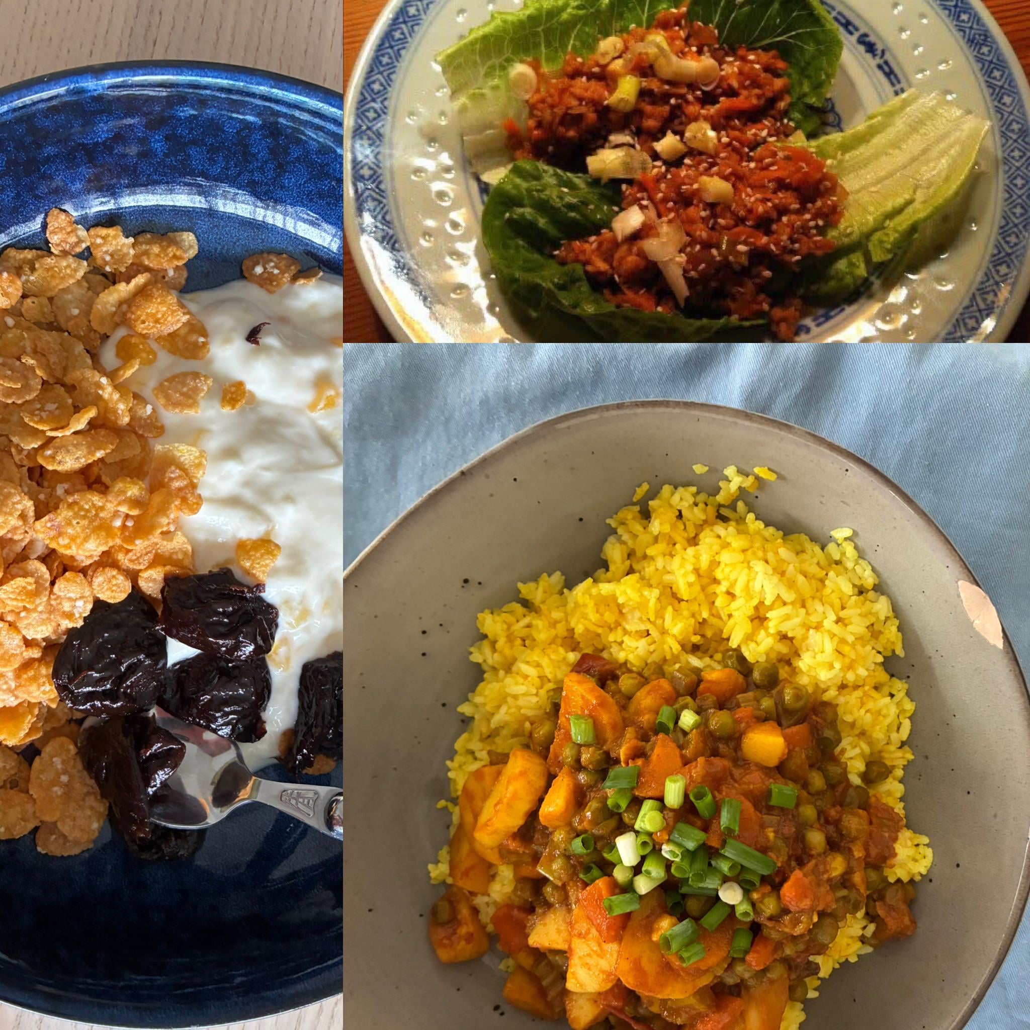 (B) Mango yoghurt, cornflakes, prunes (350)