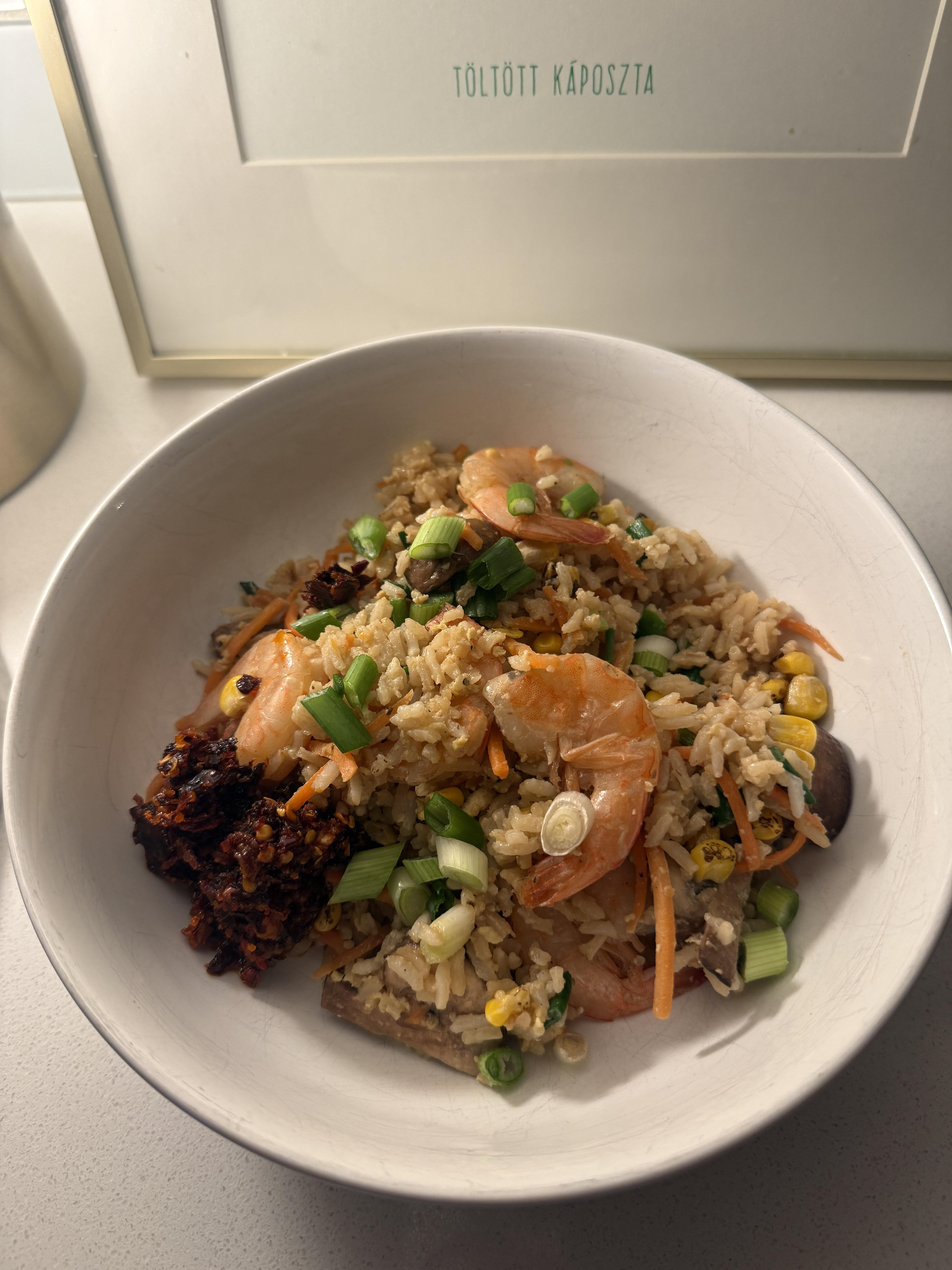 twotwotwototoulouse on March 3, 2026 2:52 am If you look at my post from two nights ago, here’s how I repurposed my leftover rice and bag of frozen shrimp. Fried rice with mushroom, green onion, carrots, frozen roasted corn, egg, soy sauce, sesame oil, and a dash of maggi seasoning 👌