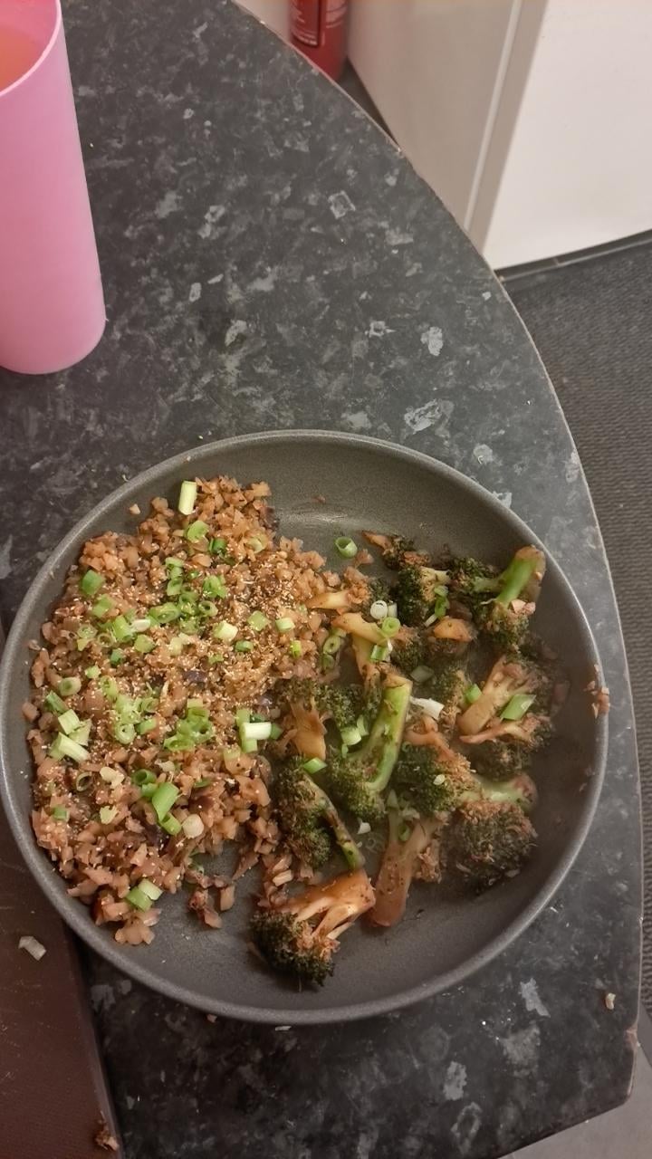 Could double the brocili and rice for volume wouldnt make much of a difference calorie wise theyre pretty low