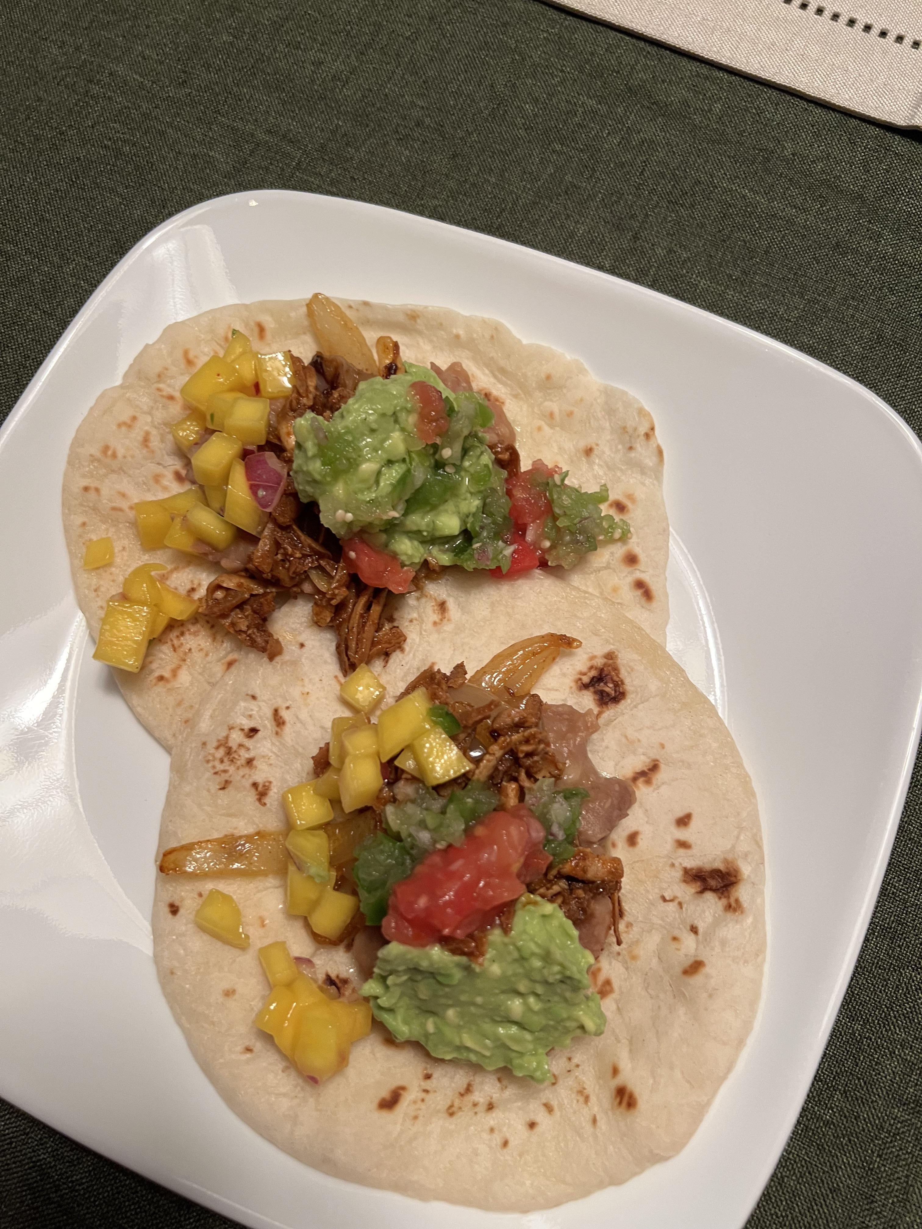 so lush with two types of salsas, guac, mango salad, beans, shredded tofu & veggies by Impressive-House-412 Vegan Food Vegan Food Porn