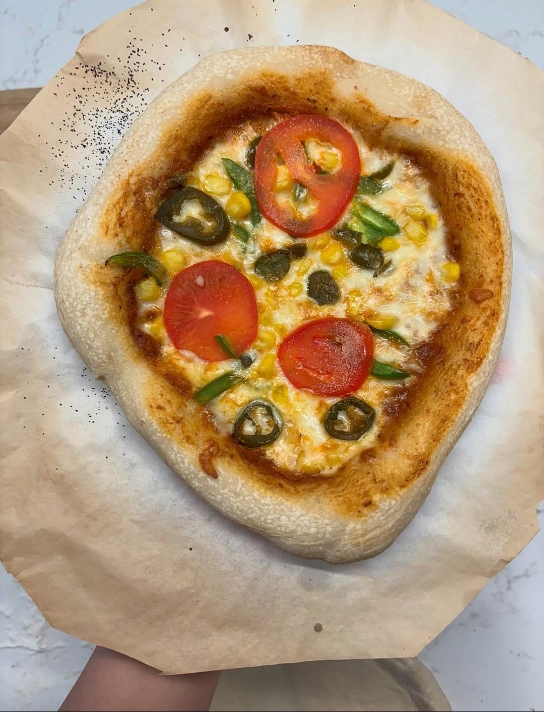 Just the approach of make a nice dough, and then scatter tomatoes amongst other toppings rather than making a tomato sauce.