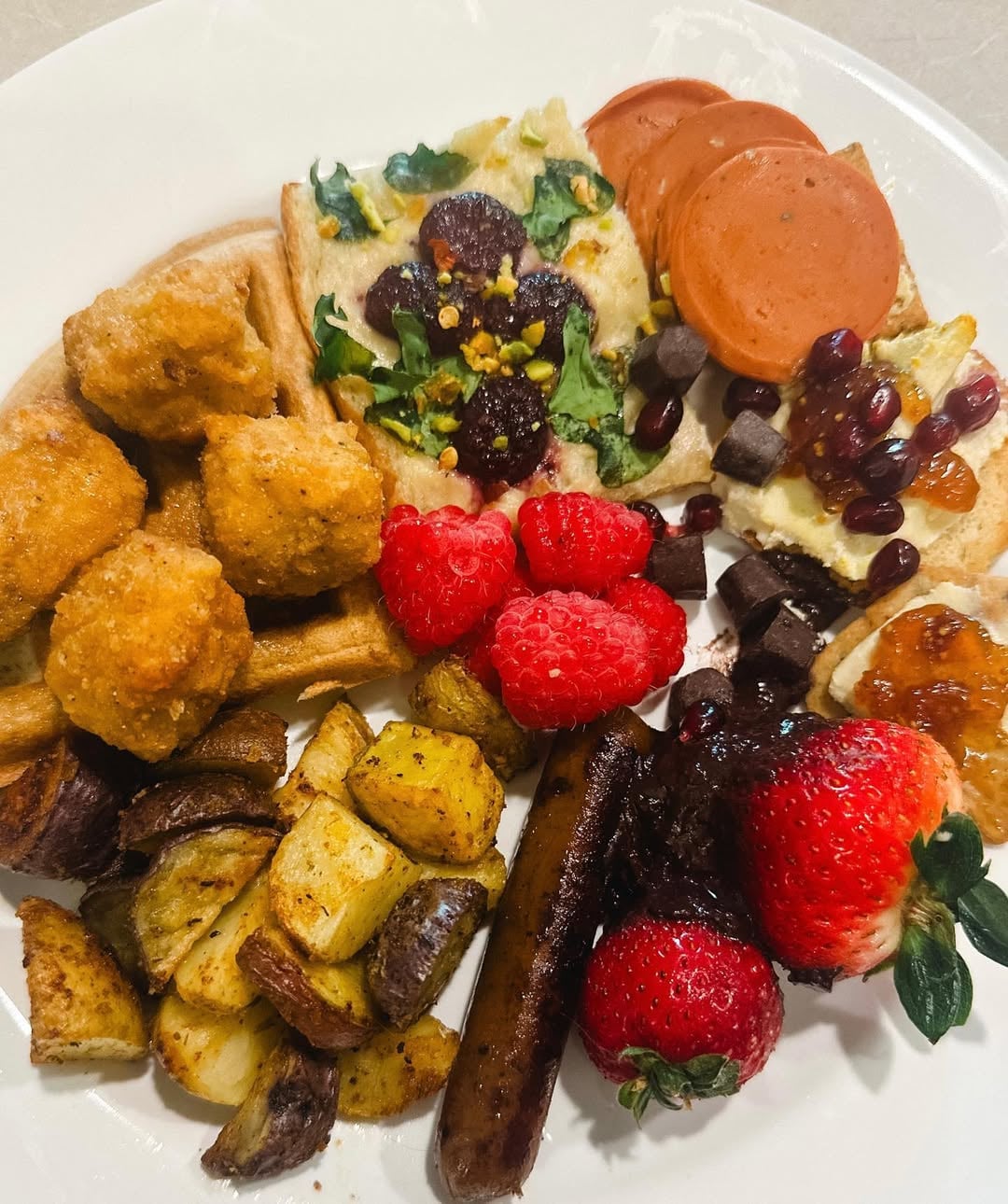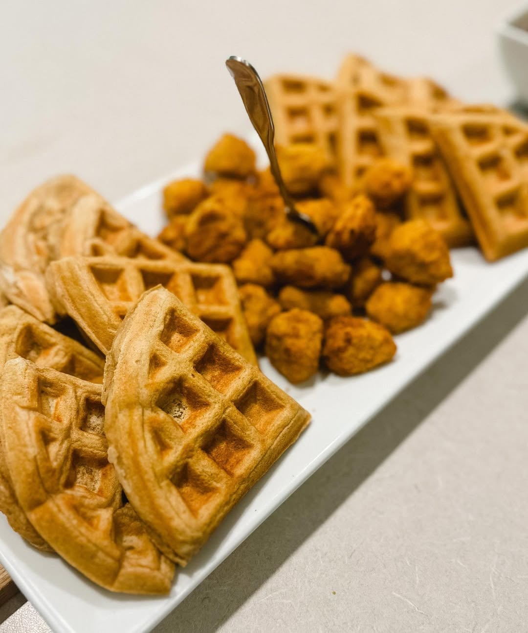 – Chick’n and waffles, made with plant protein mix, and ultimate chick’n nuggets.