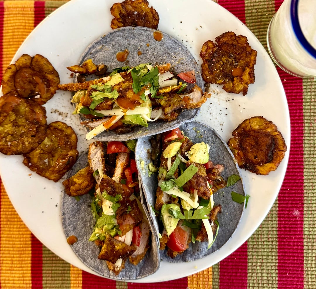 Taco Tuesday with fried pork cutlets and Tostones