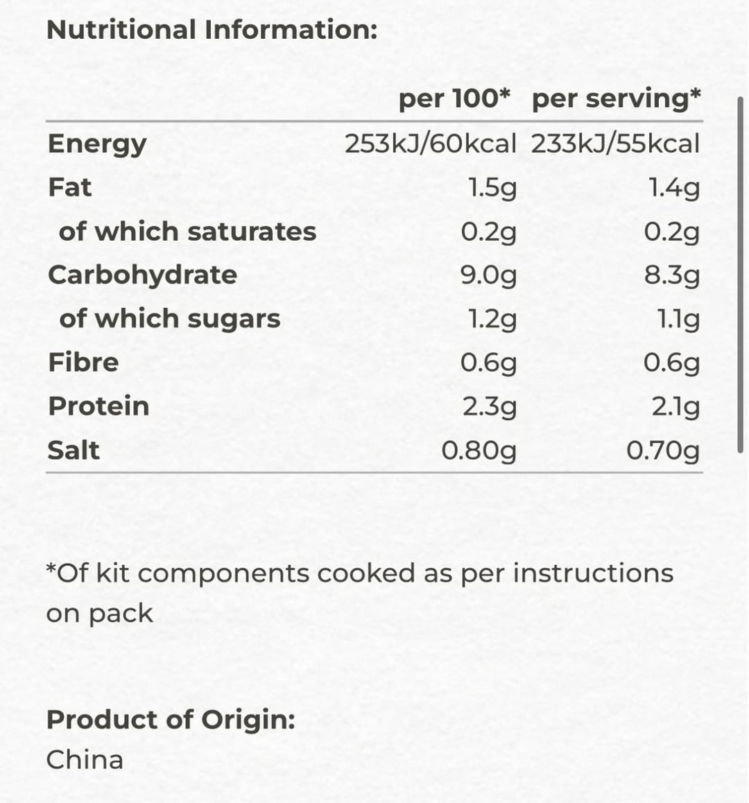 I’ve read it a thousand times and i’m sure that if it says that the kit has 2 servings, then if you make the entire kit thats 110 kcal. But i want to make sure that they’re not lying or something before i make this my staple.