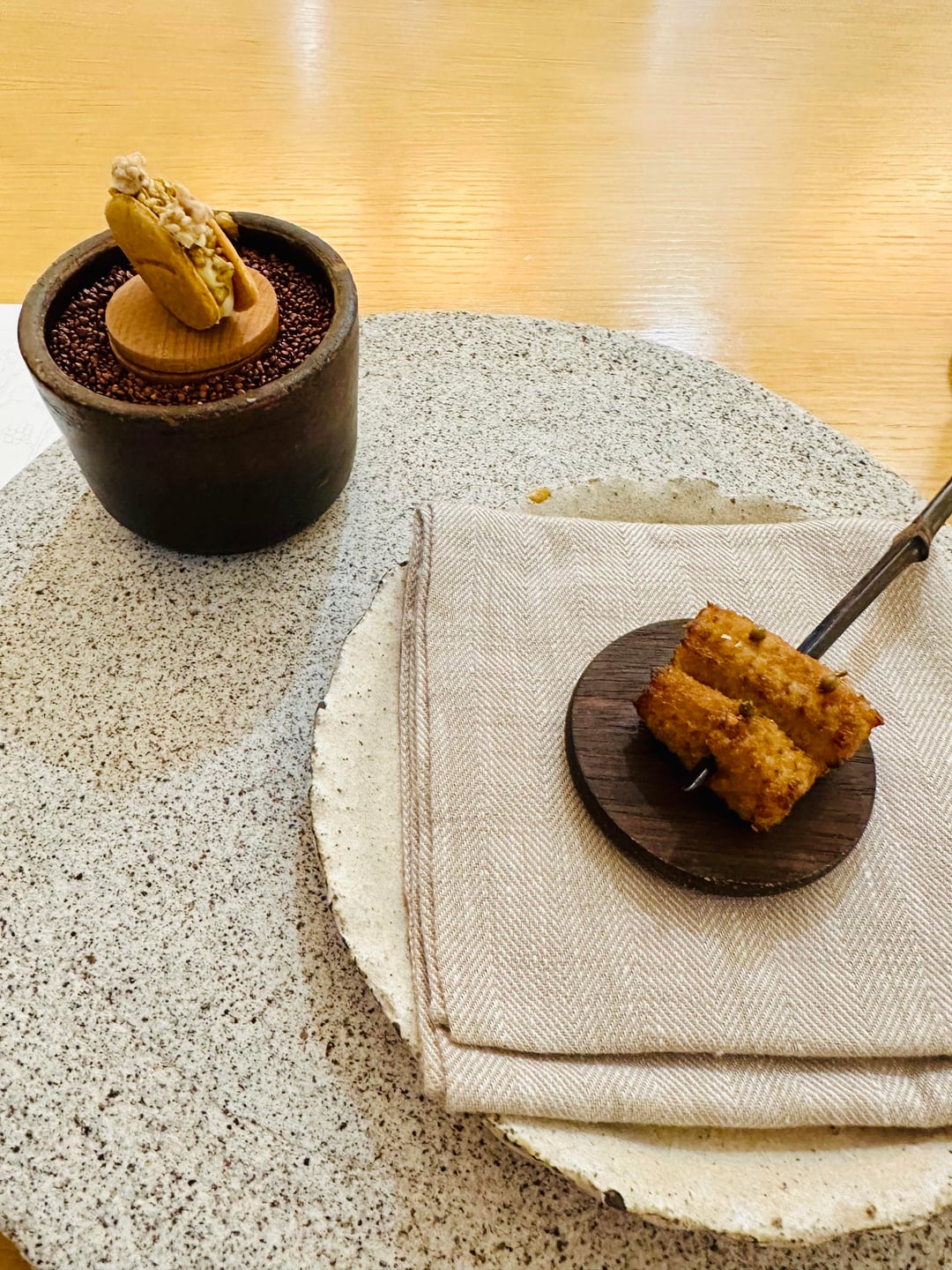 This is the second vegan tasting menu I’ve had since Oyster Oyster in Washington DC (another excellent place btw), so I had certain expectations. Sorry to sound hoity-toity and all, but every single dish I’ve had here surprised me by how much depth of flavor and textures that the chef and his team were able to layer—it’s salty, sweet, a bit tangy, with a bit of crunch, while all still following that earthy, herby, comforting theme that’s going on. Kinda gobsmacked actually.