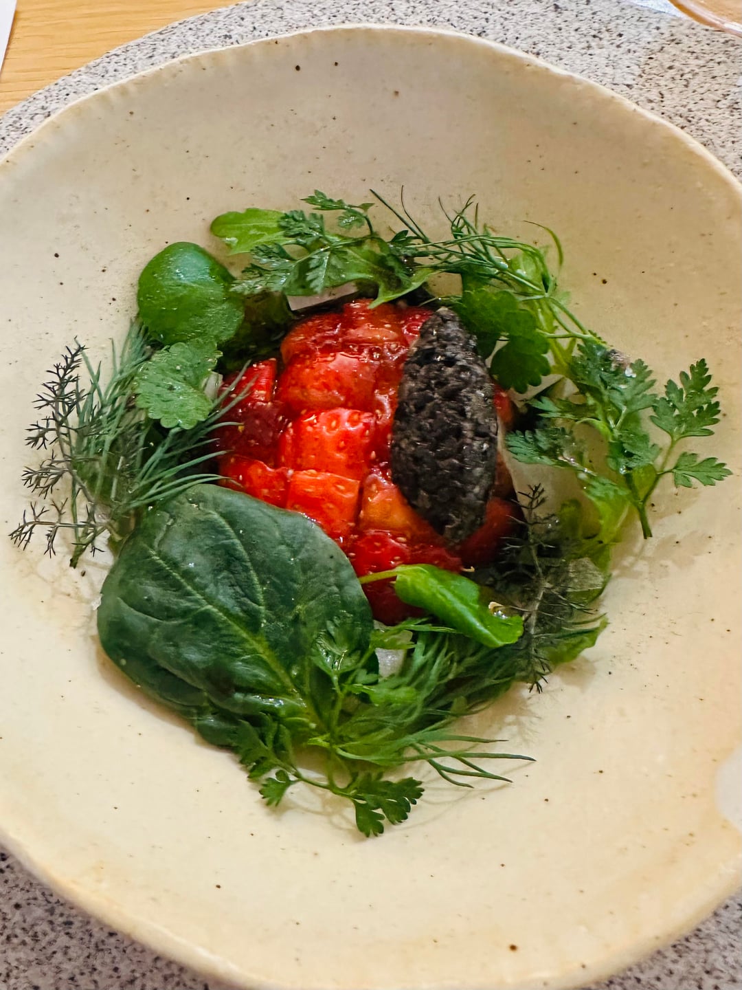 My favorite has to be the toss up between the daikon seaweed cashew chowder situation (pic 5), the pepper chickpea stew-like concoction featuring a couple of Korean herbs like chamnamul and naengi (pic 7), or the insanely juicy mushroom that’s charred to perfection with that dark rich veggie demi (pic 9). But all are great. The sauce on turnip dish in pic 8 is insane, it tasted almost like an uni butter and the way the strawberry married into the consommé is kinda genius (Pic 3). Ended the meal with a meadowsweet coconut milk sorbet (pic 11)—never heard of meadowsweet— and the truffle-chestnut sorbet that’s not pictured cuz i moved the camera too quickly.