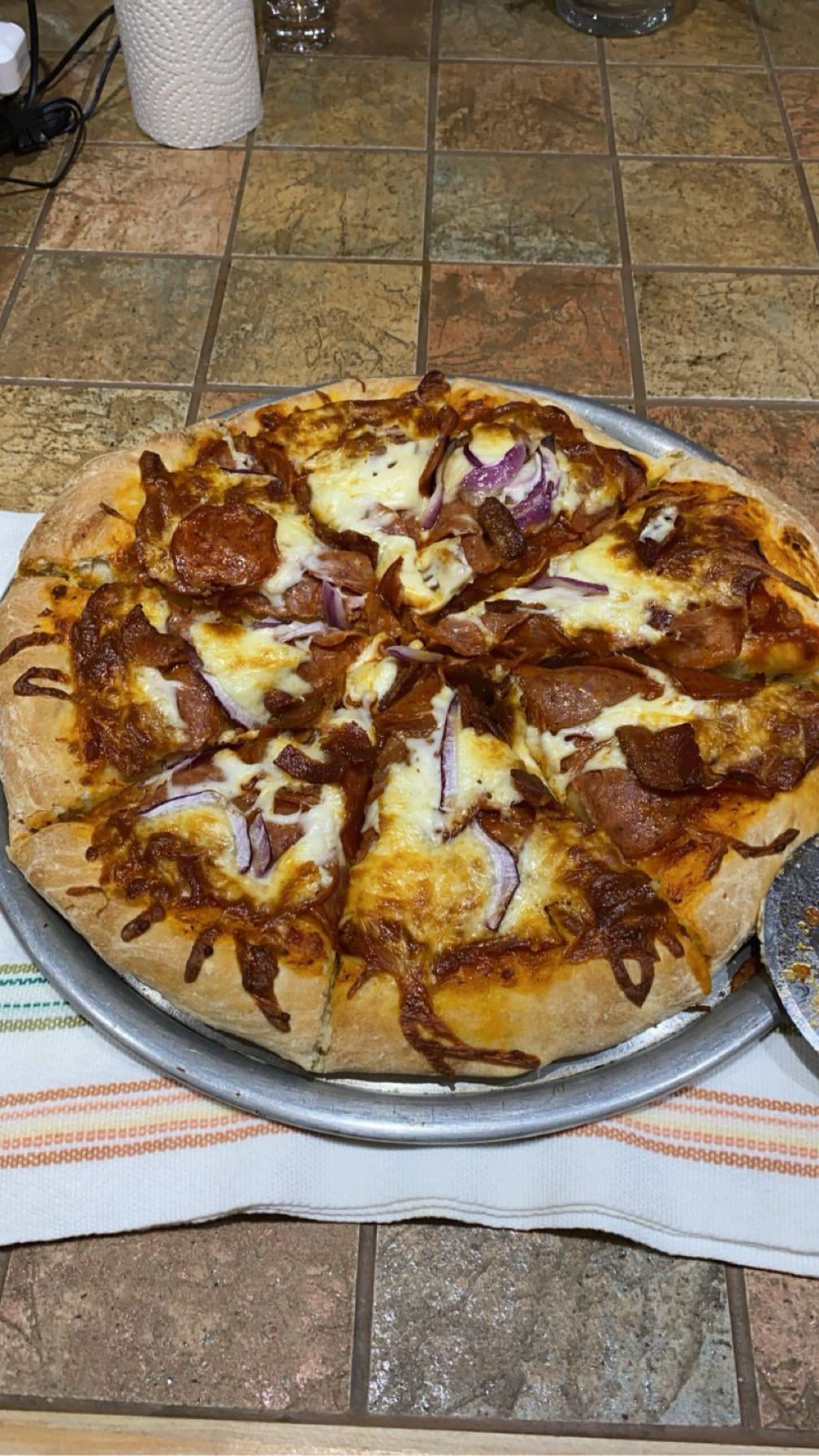 This recipe will make two 9-inch (23 cm) thin-crust pizzas or two 8-inch (20 cm) thicker-crust pizzas.