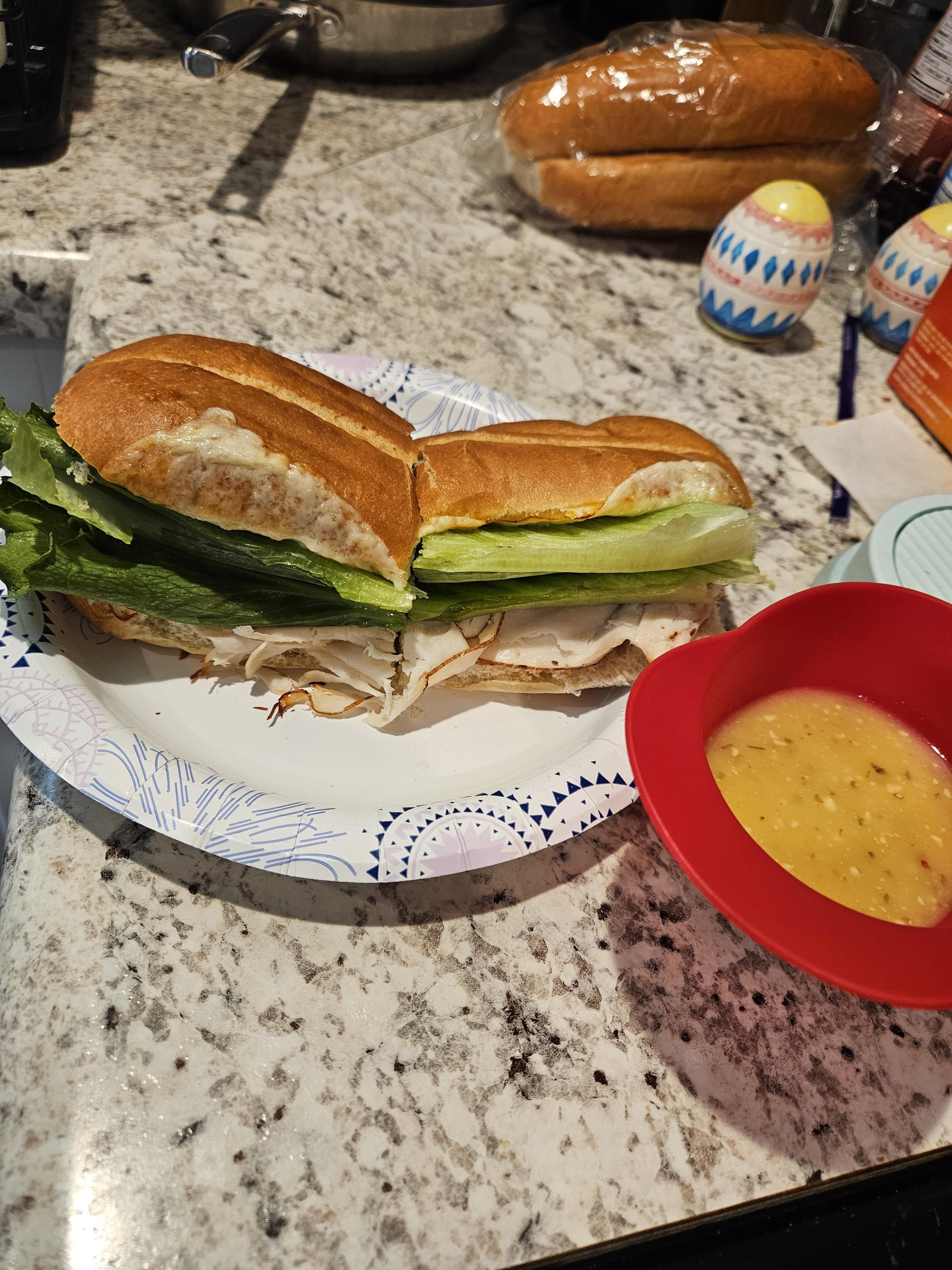 Chicken and muenster sub with Italian dressing for dipping by Banana_Stanley Dinner Tonight Tonight's Dinner