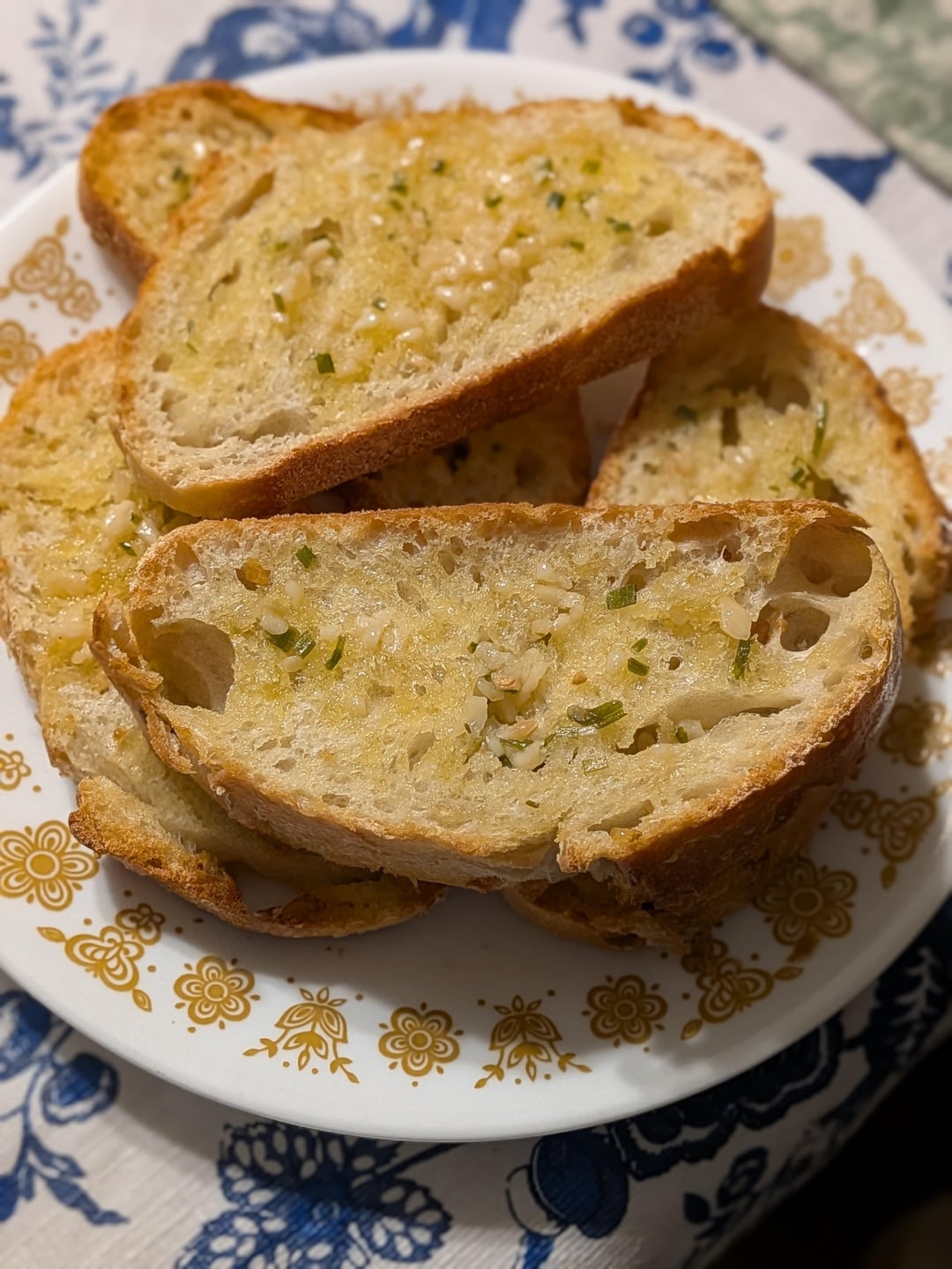 When you’re sick, homemade chicken noodle soup is always the cure. Cooked the chicken from scratch this time, makes such a difference! Sourdough garlic bread on the side
