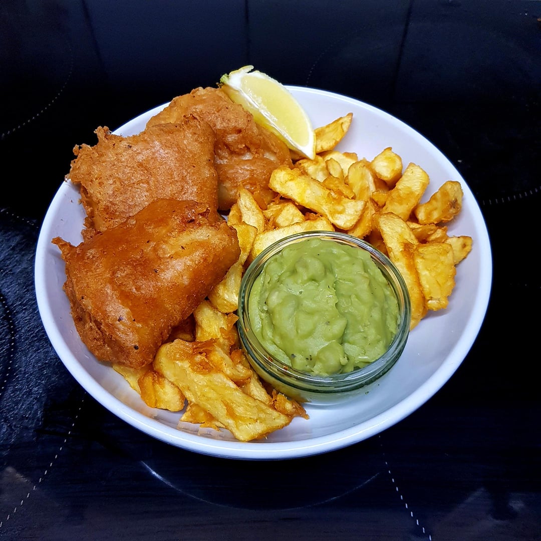 Homemade Battered Cod and Mushy Peas, plus Fancy Crispy Chips from the Chippy. Tartar on the Table. Was a Happy Wednesday Indeed!