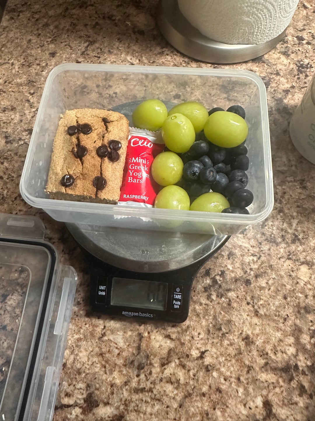5tf pic: grapes, blueberries, & clio bar (had another one off camera 🤭)