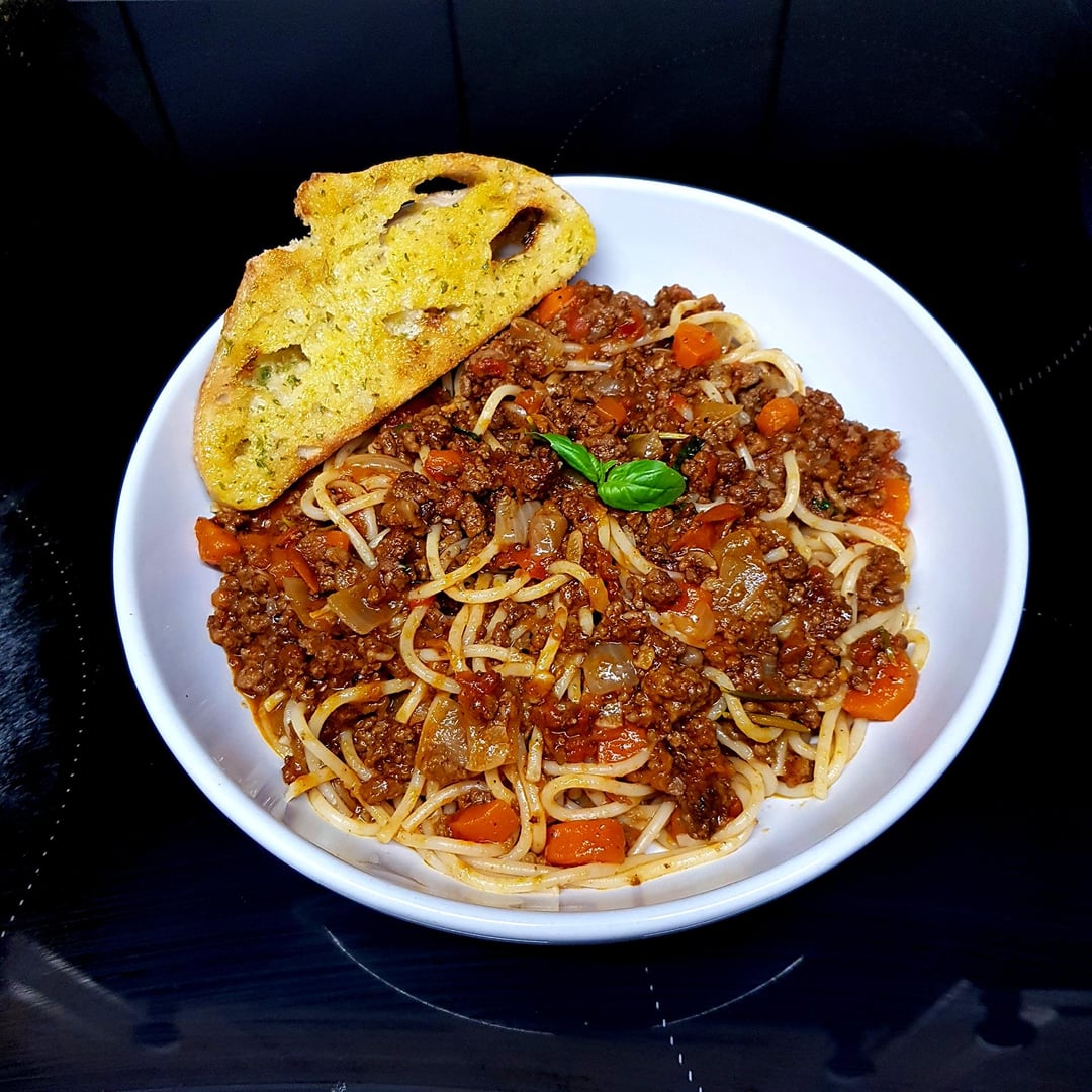 A Good Ol’ Spag Bol. Very Early Morning Insomnia Cooking = A Delicious, Rich Sauce by Dinner Time. Garlic Toast to Mop Up. by pink_flamingo2003 Dinner Tonight Tonight's Dinner