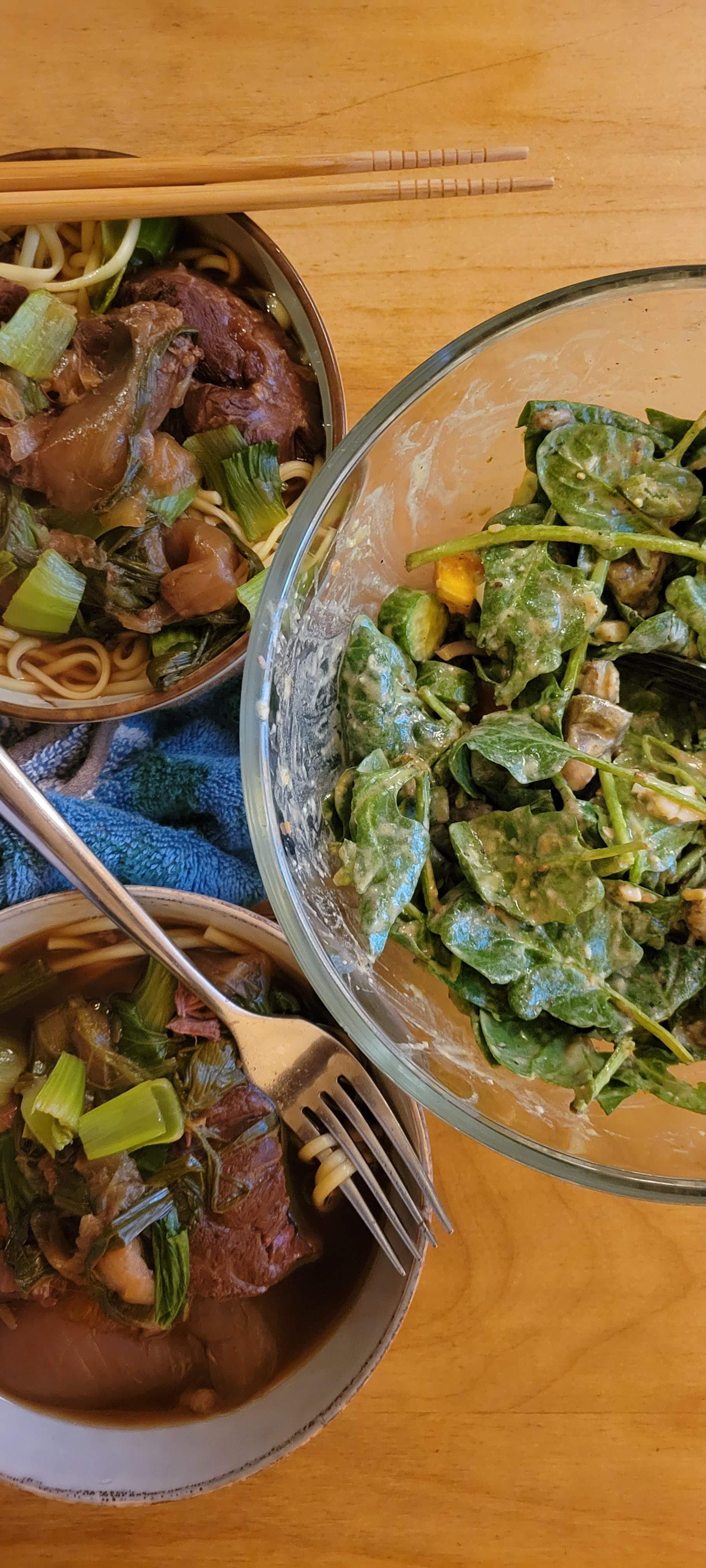 Beef Stew and Noodles with Salad