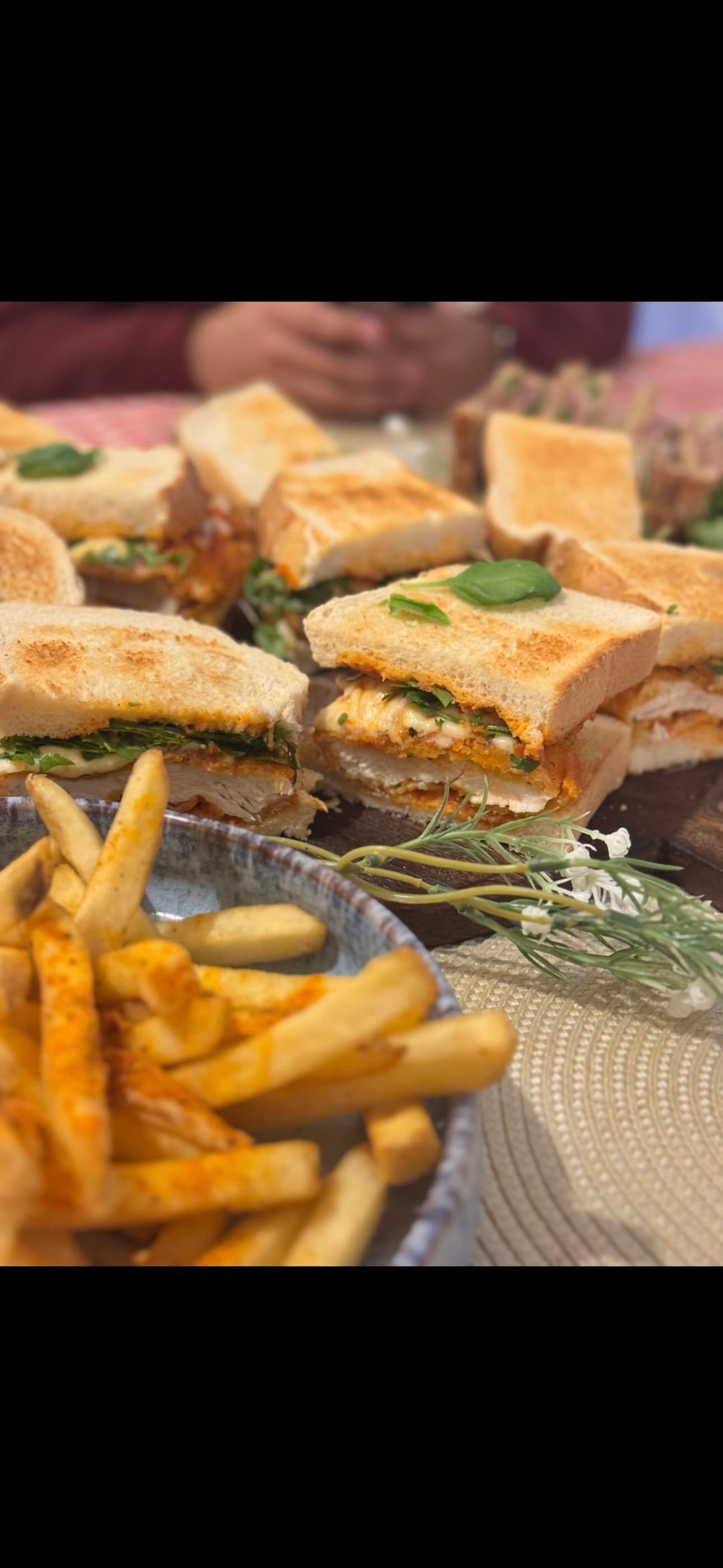 ‘Sunset picnic’: Warm halloumi tacos w/ pineapple salsa & aji verde, Gouda and hunter beef sandwich, chicken Parmesan sandwich & bruschetta