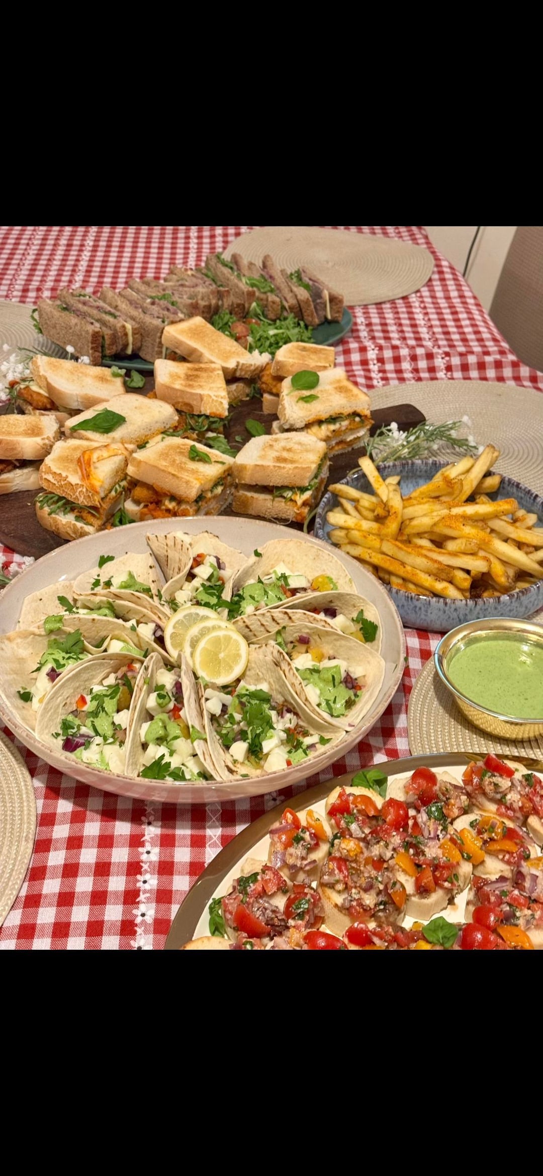 ‘Sunset picnic’: Warm halloumi tacos w/ pineapple salsa & aji verde, Gouda and hunter beef sandwich, chicken Parmesan sandwich & bruschetta by Difficult_Guess4623 Dinner Tonight Tonight's Dinner