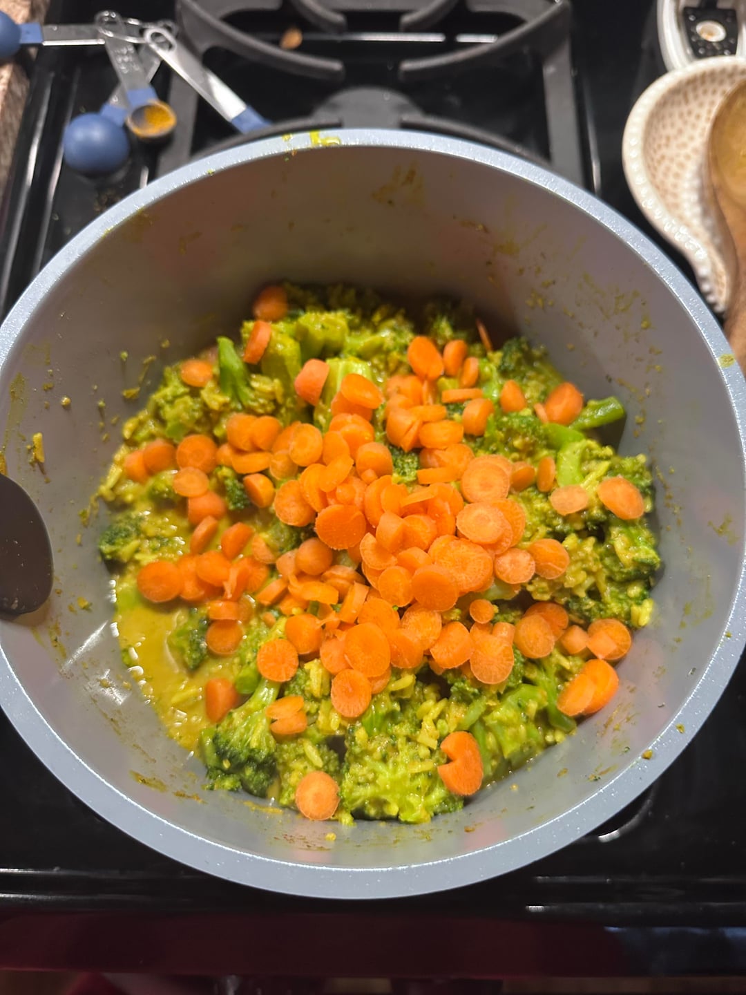 4th pic: carrots, broccoli, curry, & white rice