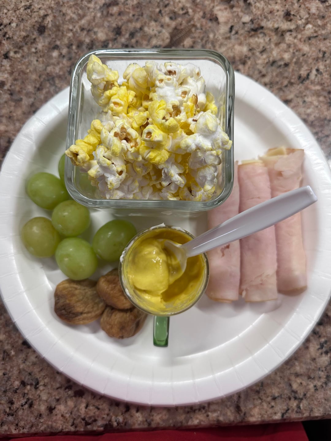2nd pic: turkey, mozzarella, grapes, figs, popcorn, & mustard w/ light mayo