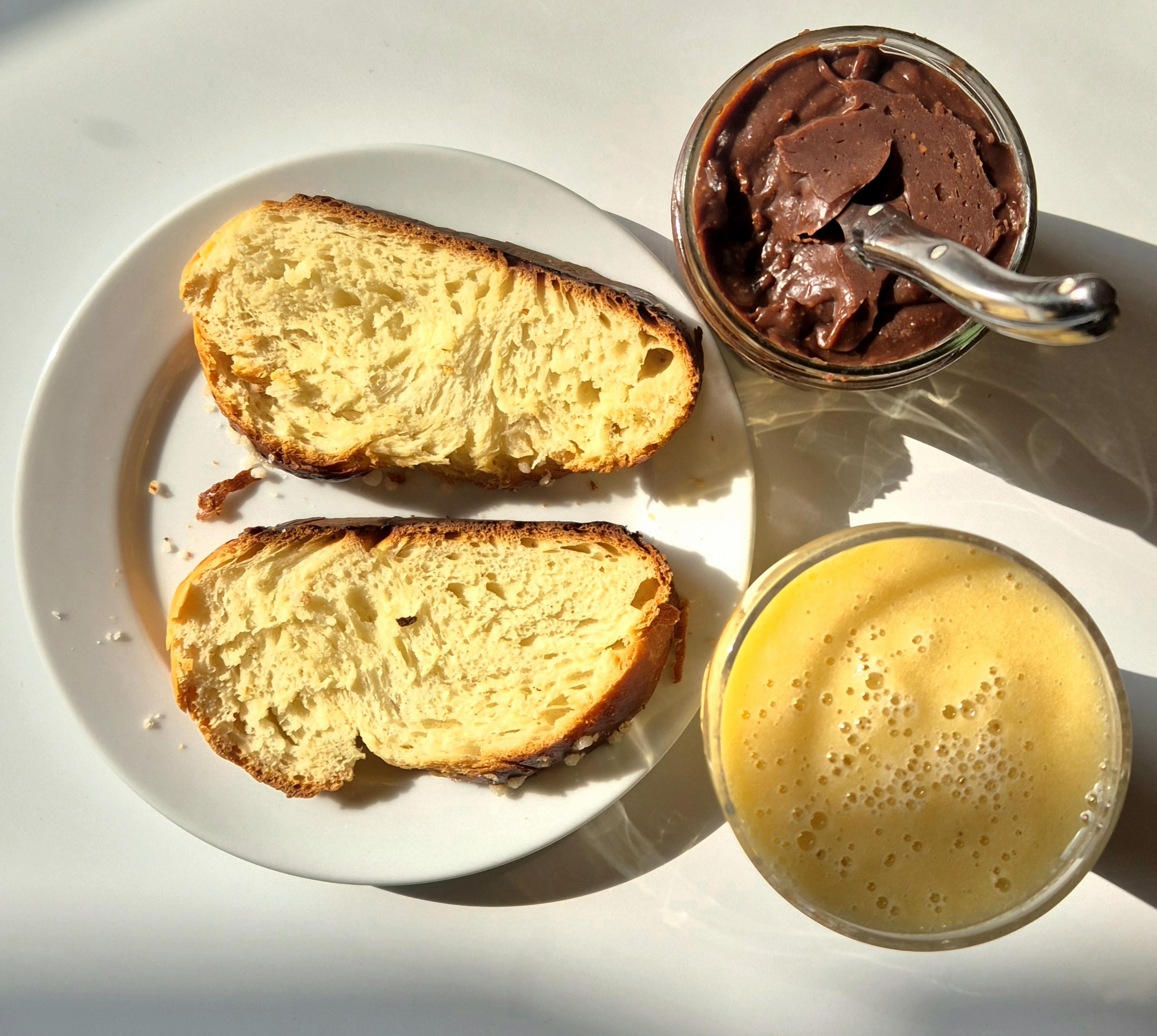 Woke up at 5 AM this Sunday to offer my wonderful girlfriend the breakfast she deserves: homemade brioche, spread, and smoothie. Can’t wait for her to open her eyes.