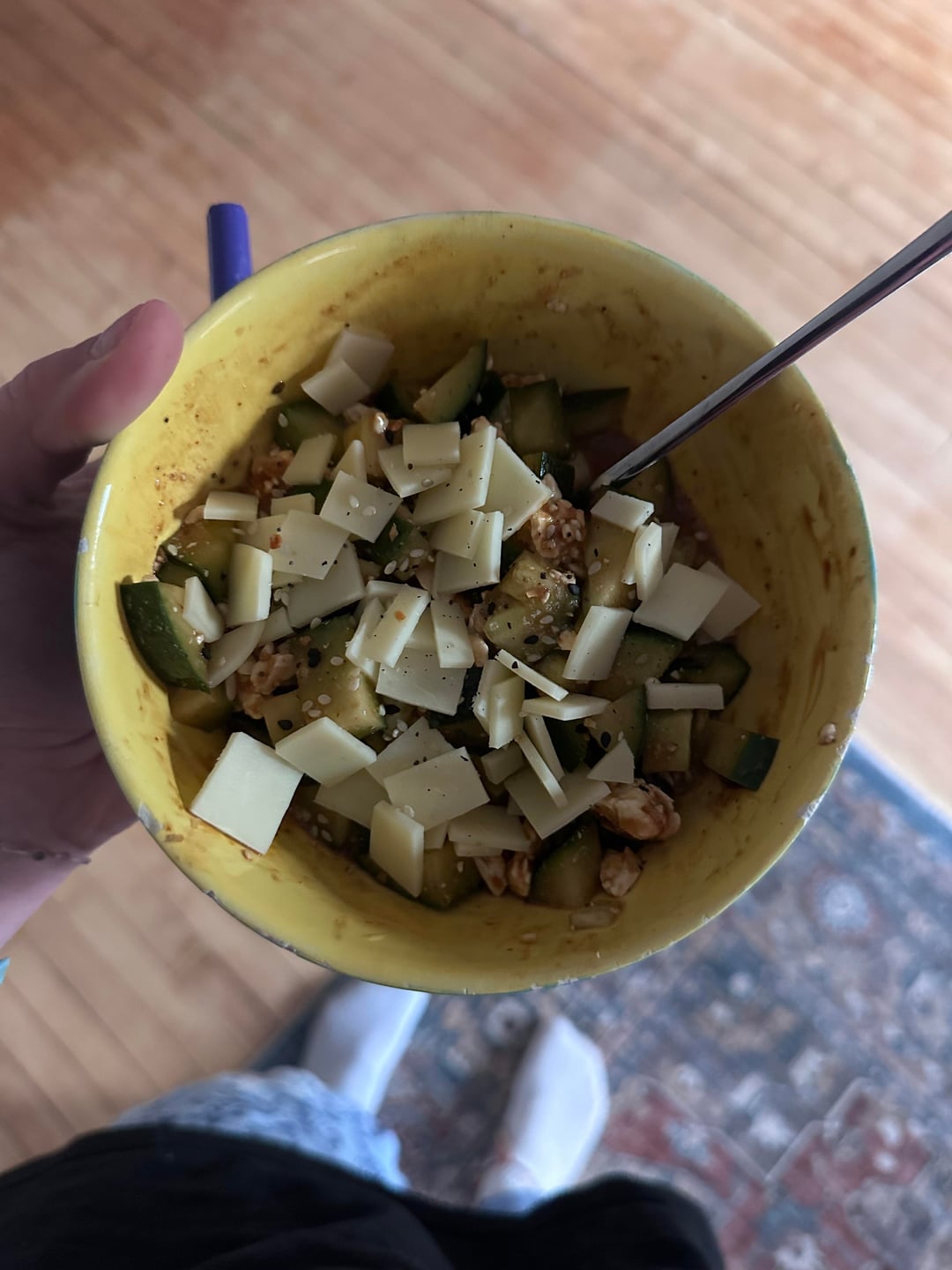 3rd pic: cucumbers, feta cheese, mozzarella, everything seasoning, & balsamic dressings