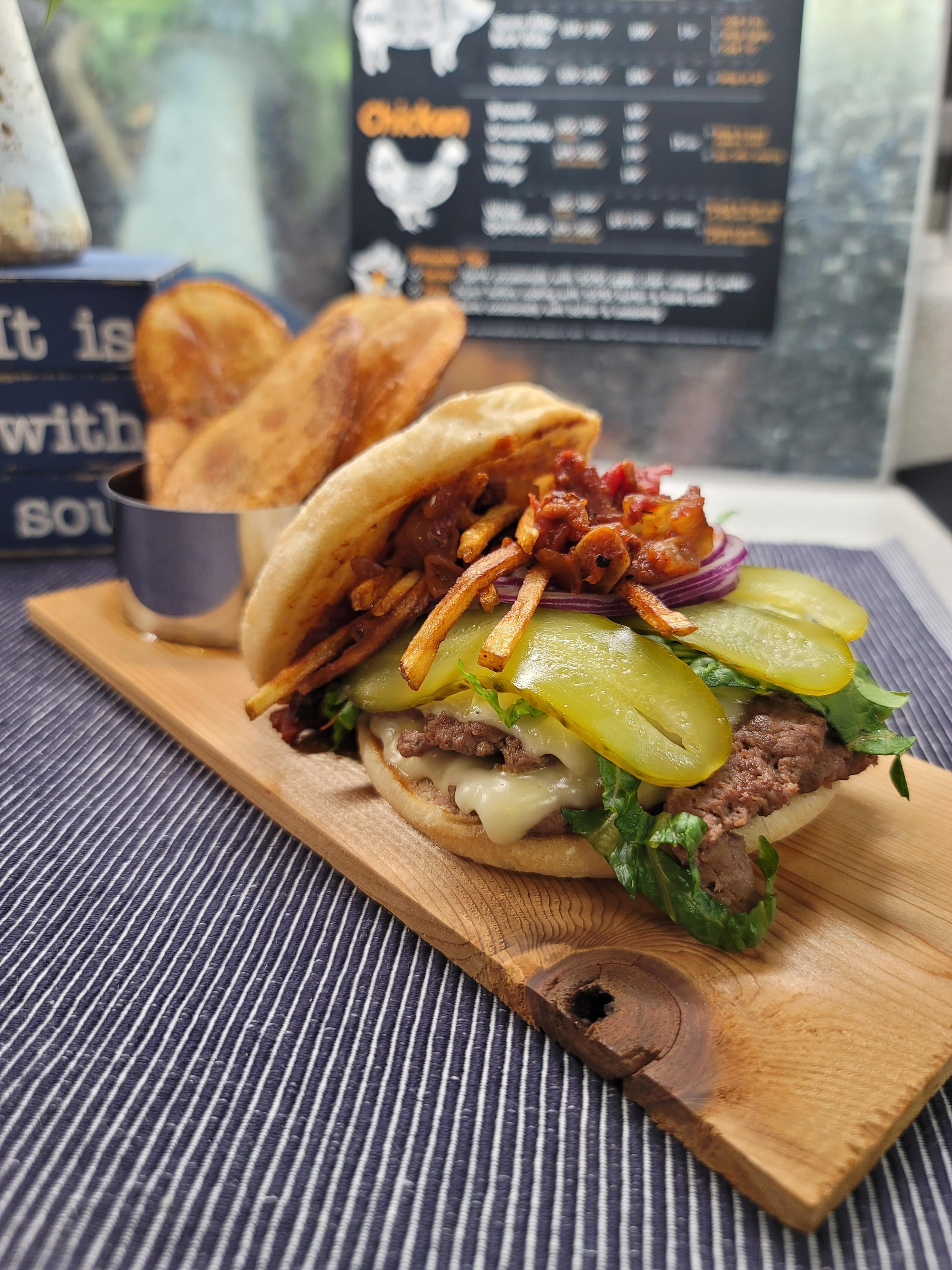 [Homemade]Venison Smash Cheeseburger with Bacon-Tomato-Onion Jam, Shoestring Fries, thin sliced Pickles, Red Onion, Shredded Lettuce, and Homemade Chips!!! by Inner-Sir-1214 Food Porn