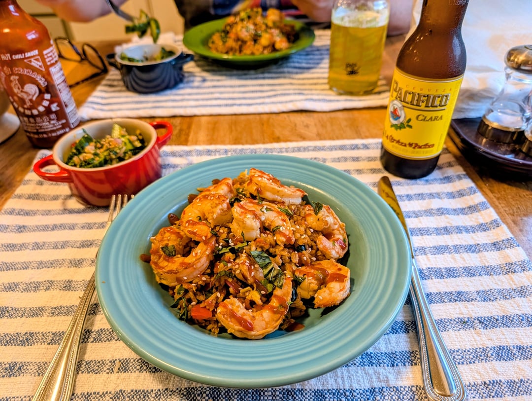 Grilled lemongrass shrimp with Thai basil fried rice and cucumber salad 🔥 by Dusty_Old_McCormick Dinner Tonight Tonight's Dinner