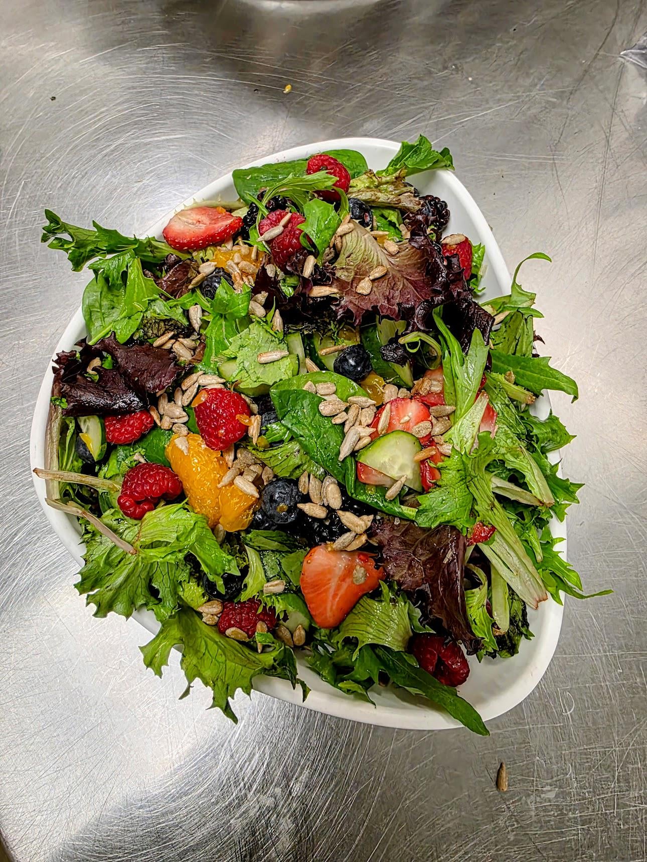 Triple berry salad with mandarin orange, cranberry, and lemon vinagrette