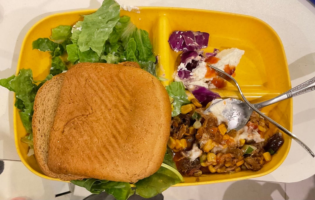 I’m so glad I got myself some tuna and veggies can(388 in whole) , I decided to use half, bread (80 per slice) some leafy greens (50) and feta cheese (not sure but it’s probably less than 50 cal) and some condiments like hot sauce. I loved it so much, and it’s very filling, I tend to eat super fast and finish everything in few minutes so I really needed the bulky meal.
