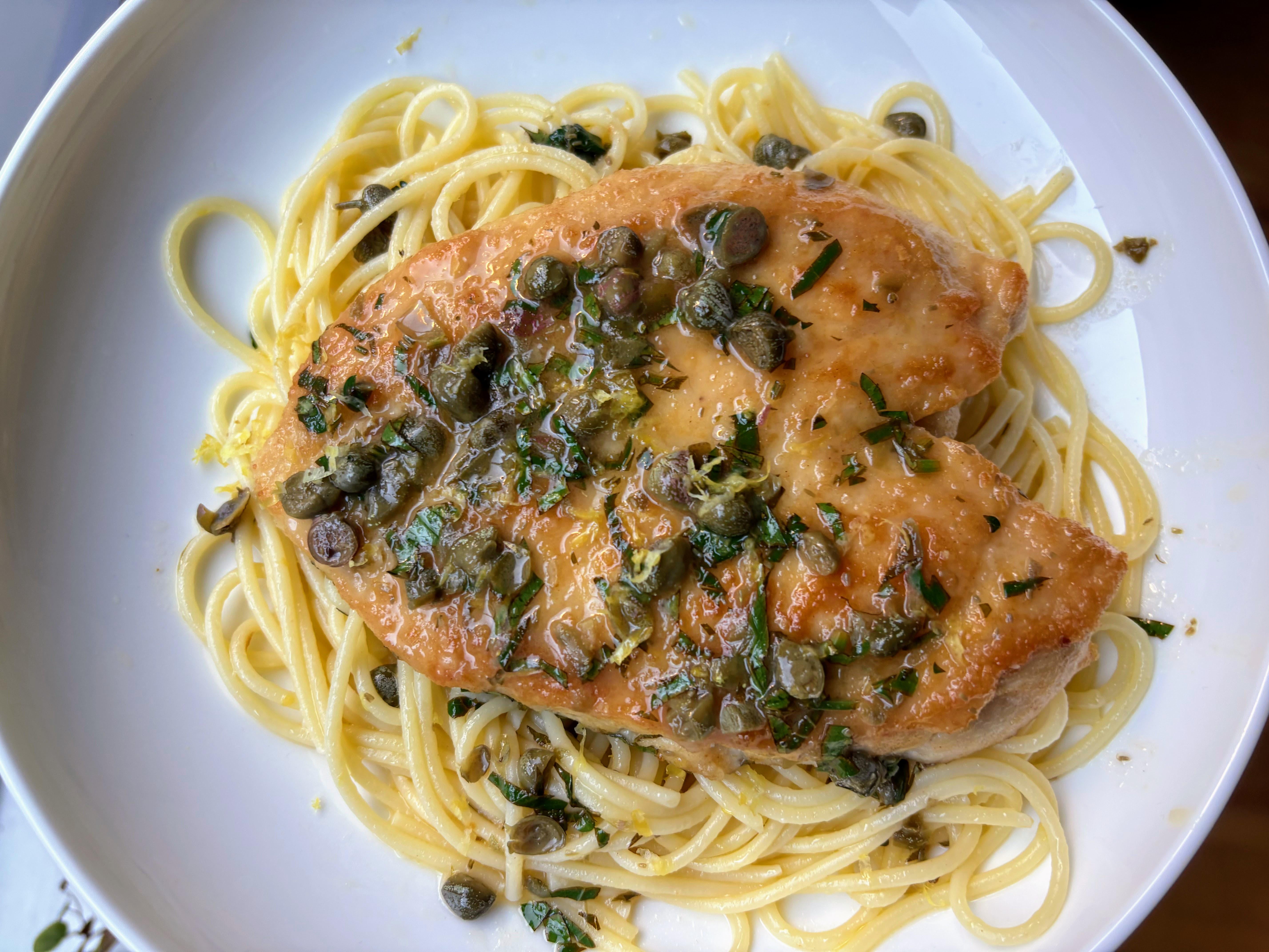 [Homemade] Chicken Piccata over Spaghettini